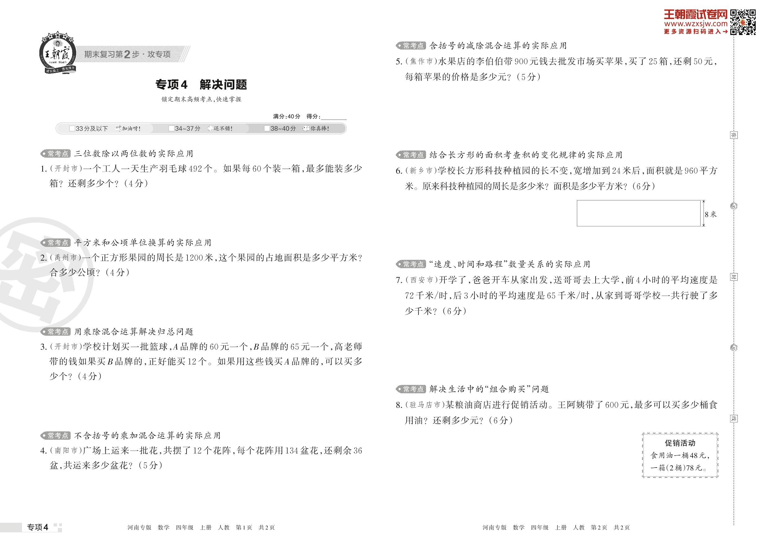 王朝霞期末专项卷——解决问题四年级上册数学(人教版)_R221111171802646【4】