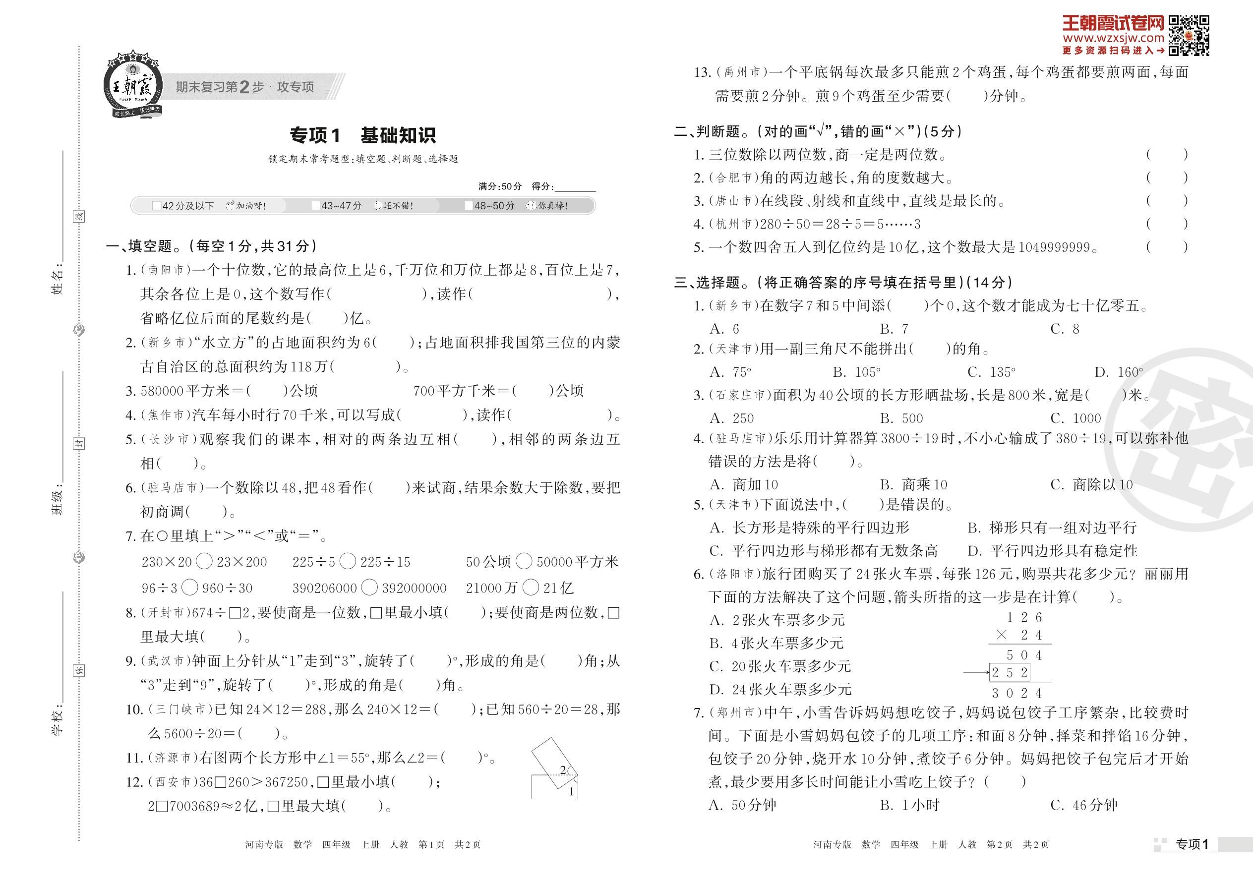 王朝霞期末专项卷——基础知识四年级上册数学(人教版)_R221111171802971【1】