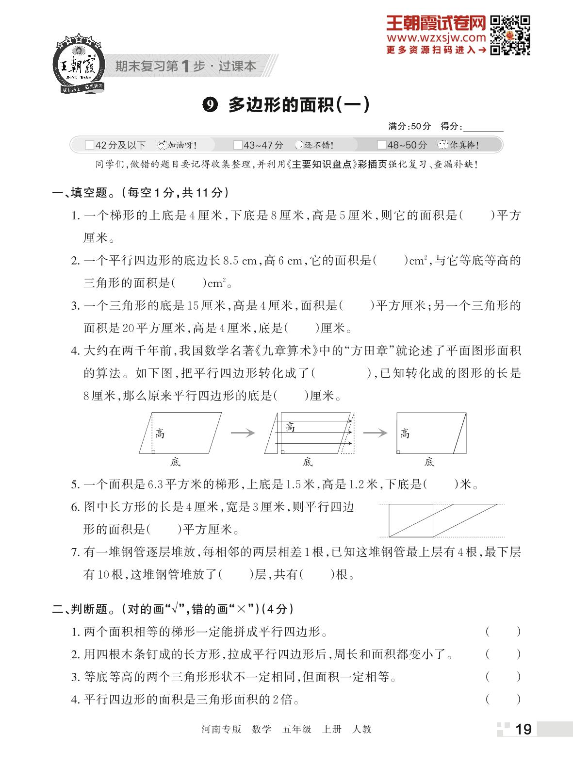 王朝霞期末过课本——9 多边形的面积(一)五年级上册数学(人教版)