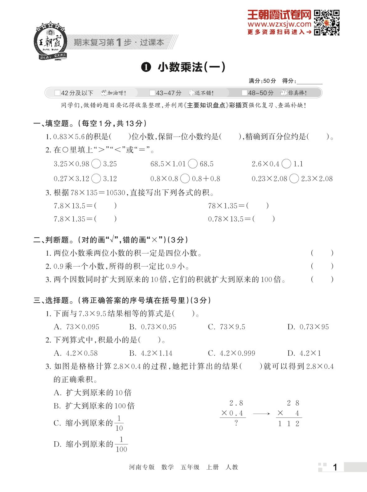 王朝霞期末过课本——1 小数乘法(一)五年级上册数学(人教版)