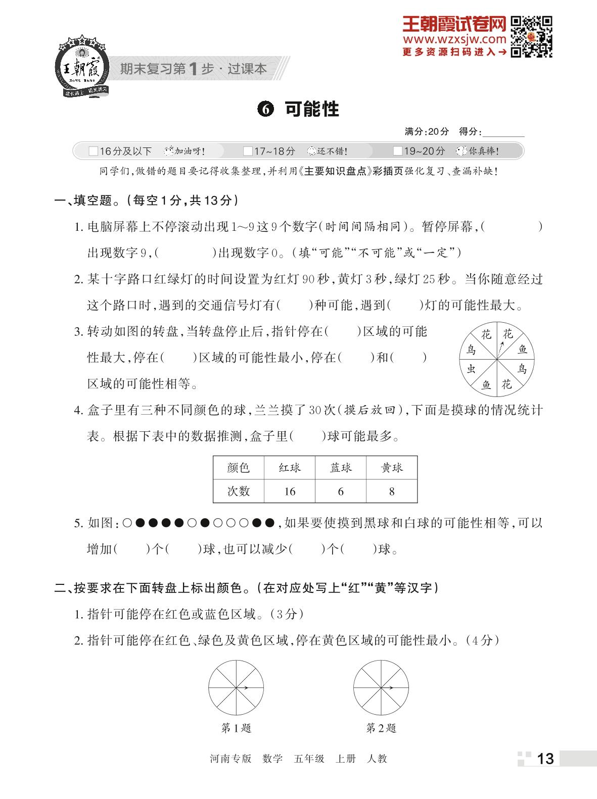 王朝霞期末过课本——6 可能性五年级上册数学(人教版)