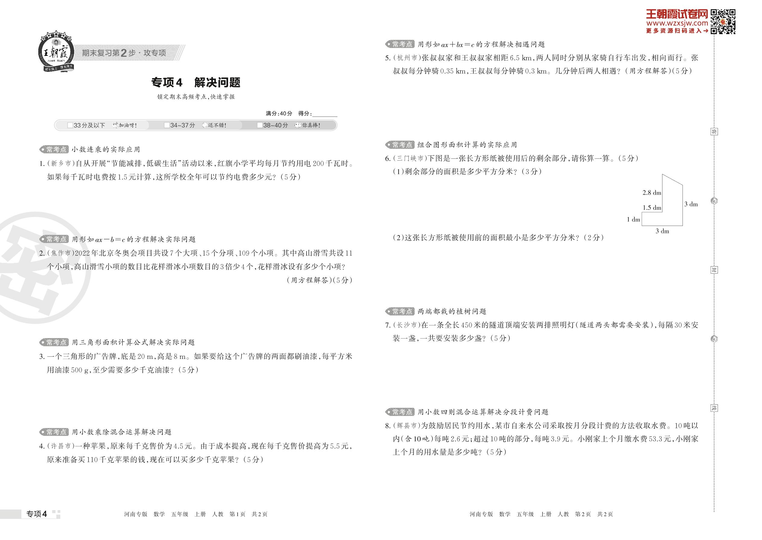 王朝霞期末专项卷——解决问题五年级上册数学(人教版)【4】