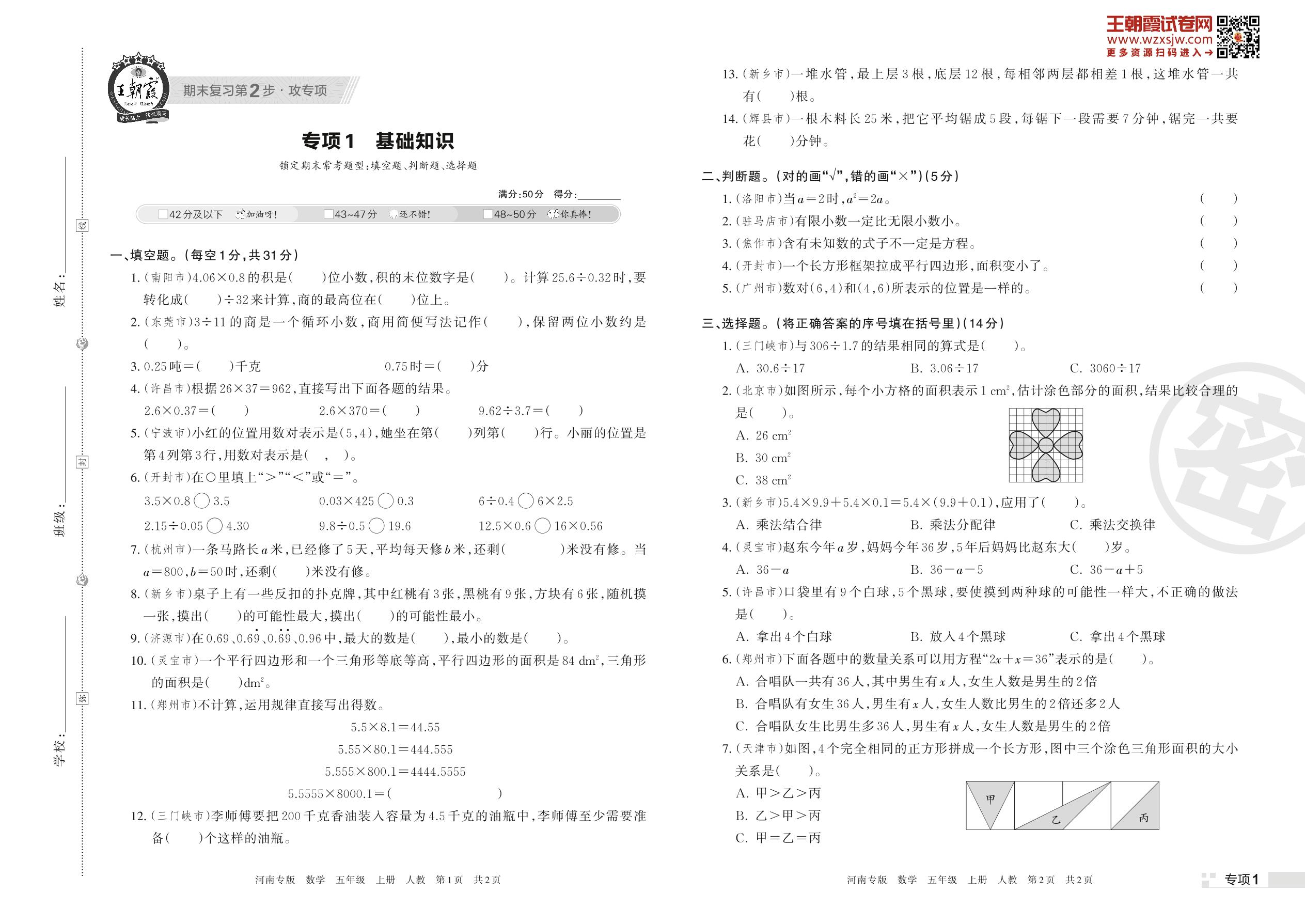 王朝霞期末专项卷——基础知识五年级上册数学(人教版)【1】