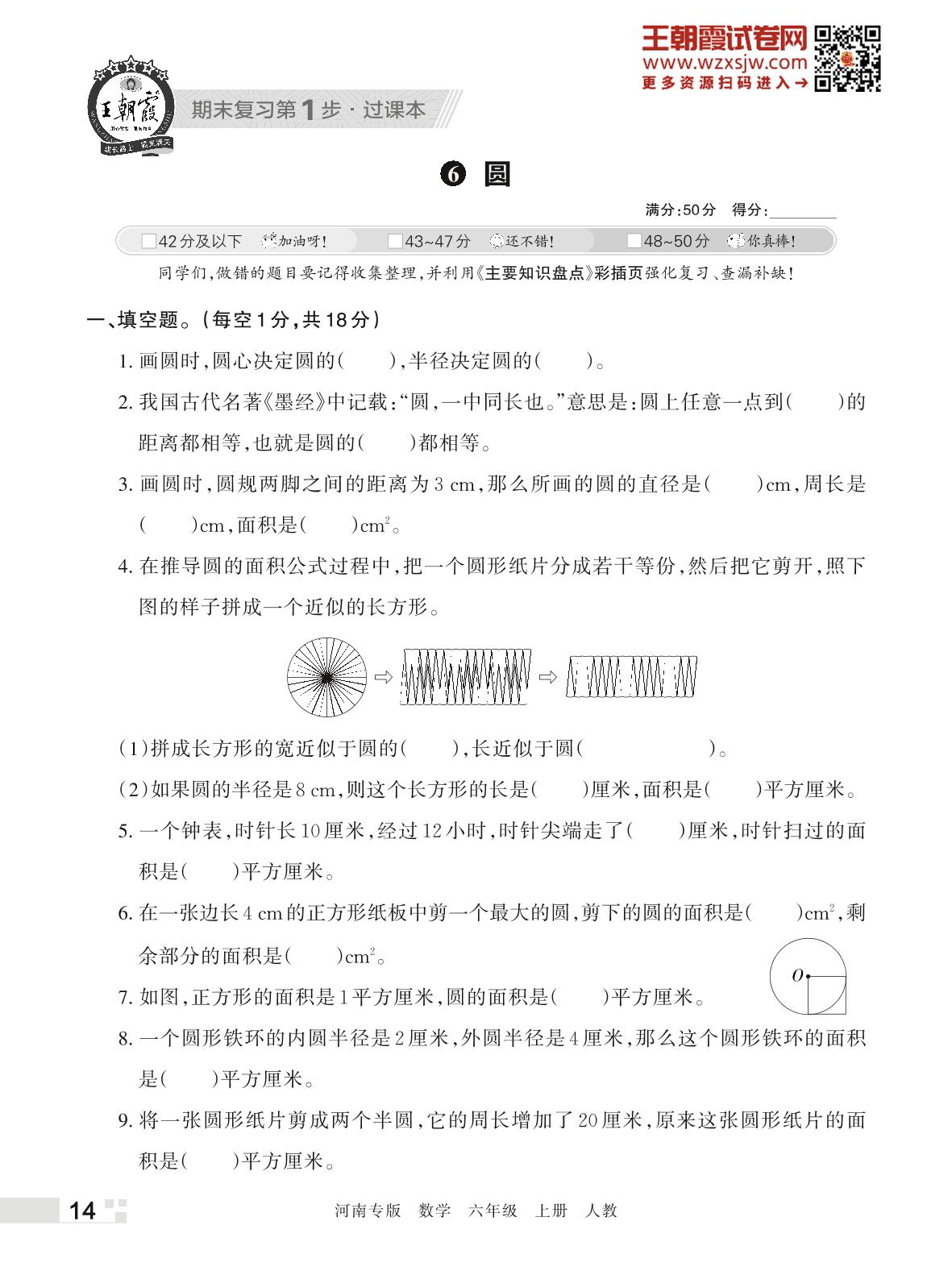 王朝霞期末过课本——6 圆六年级上册数学(人教版)
