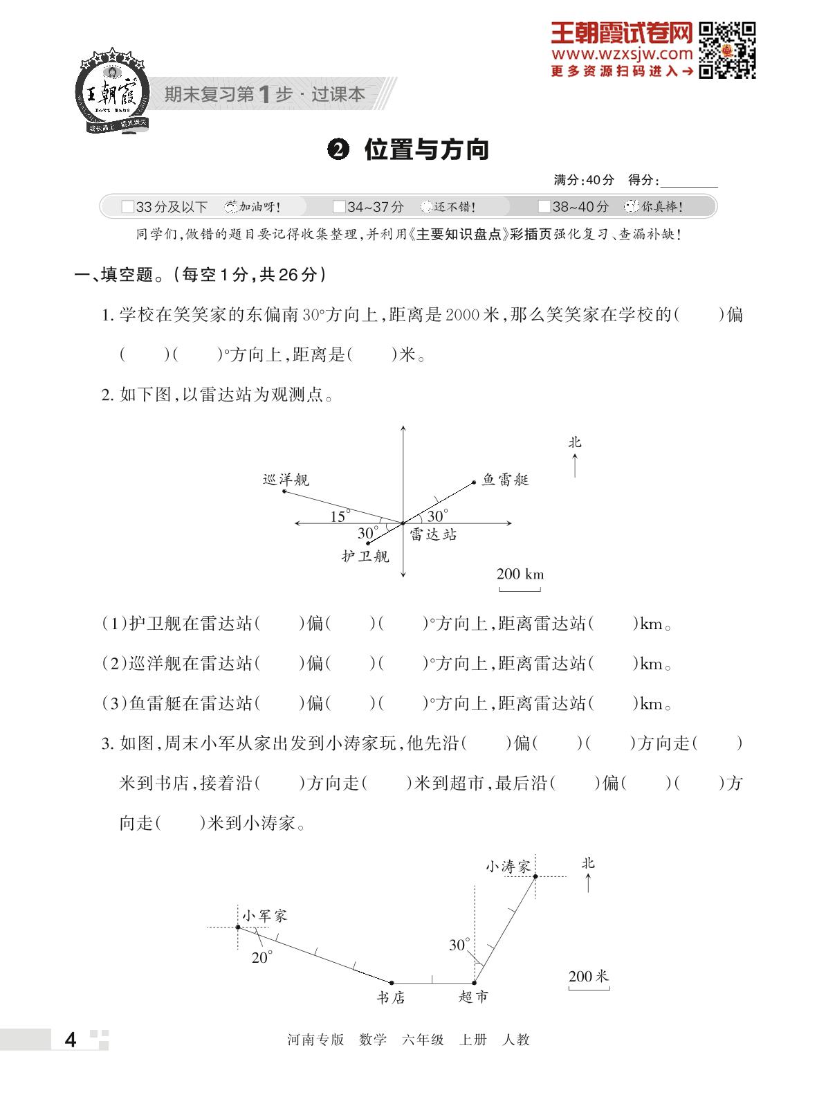 王朝霞期末过课本——2 位置与方向六年级上册数学(人教版)