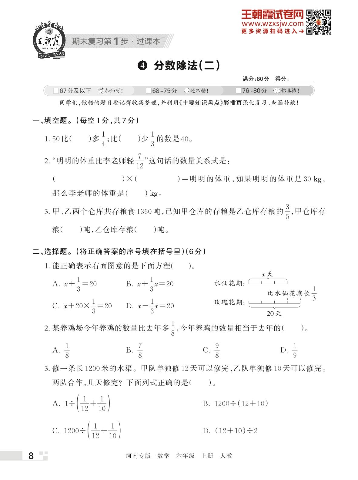 王朝霞期末过课本——4 分数除法(二)六年级上册数学(人教版)