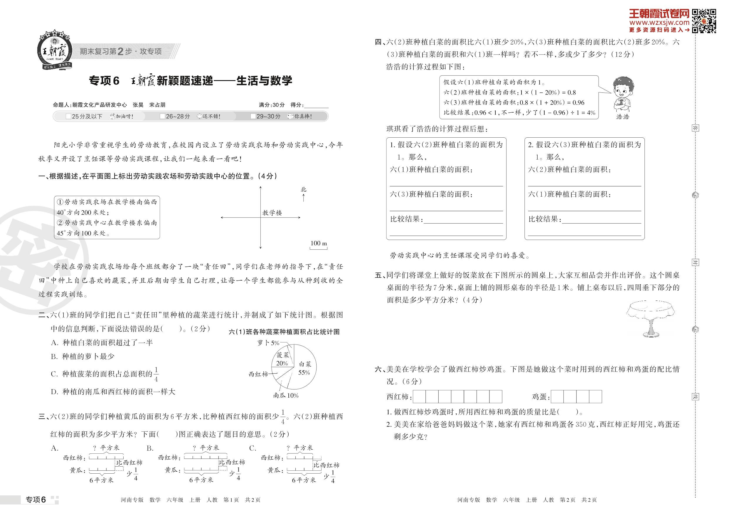王朝霞期末专项卷——王朝霞新颖题速递:生活与数学六年级上册数学(人教版)【6】