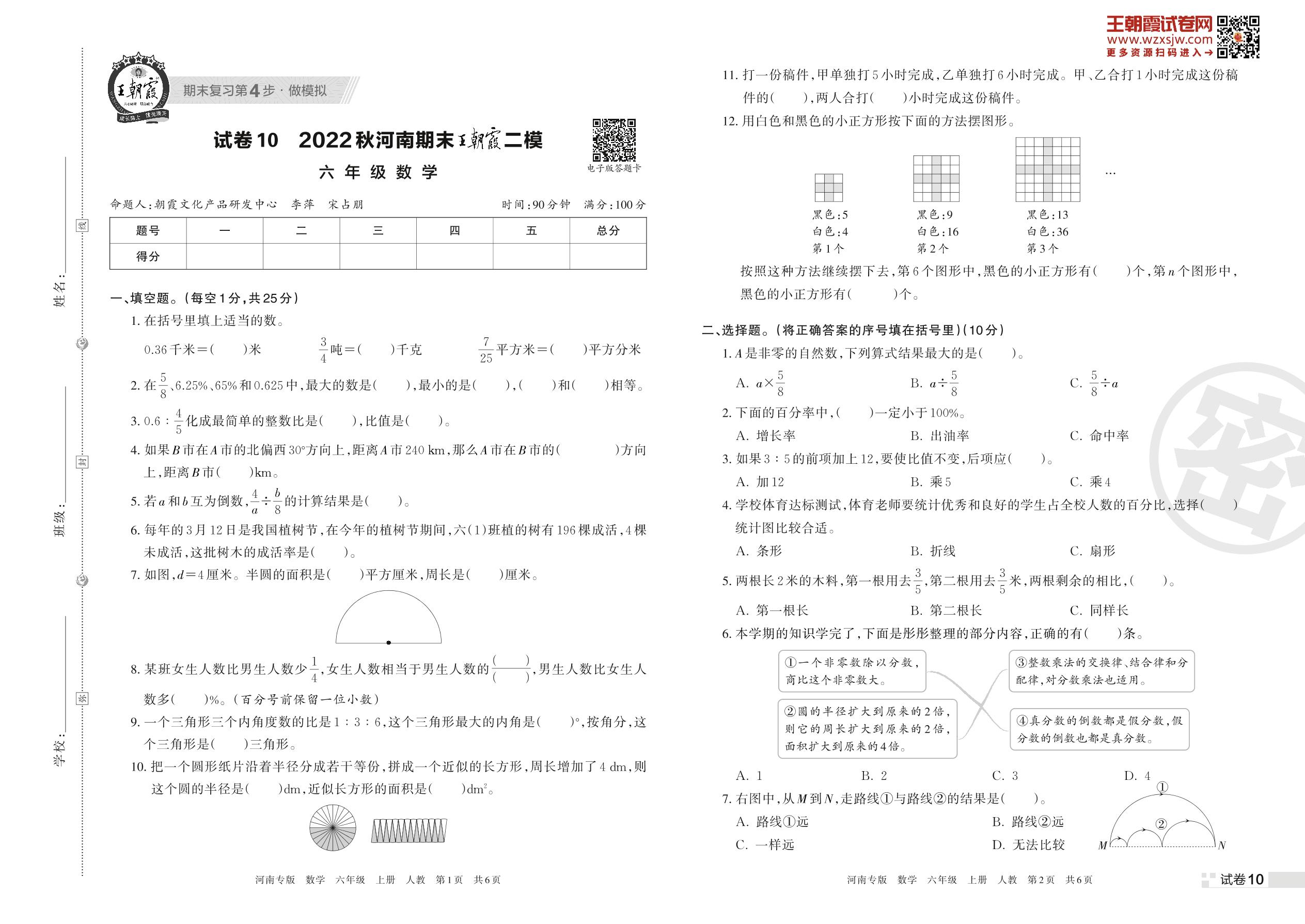 王朝霞期末模拟卷六年级上册数学(人教版)_R221111173852314【10】