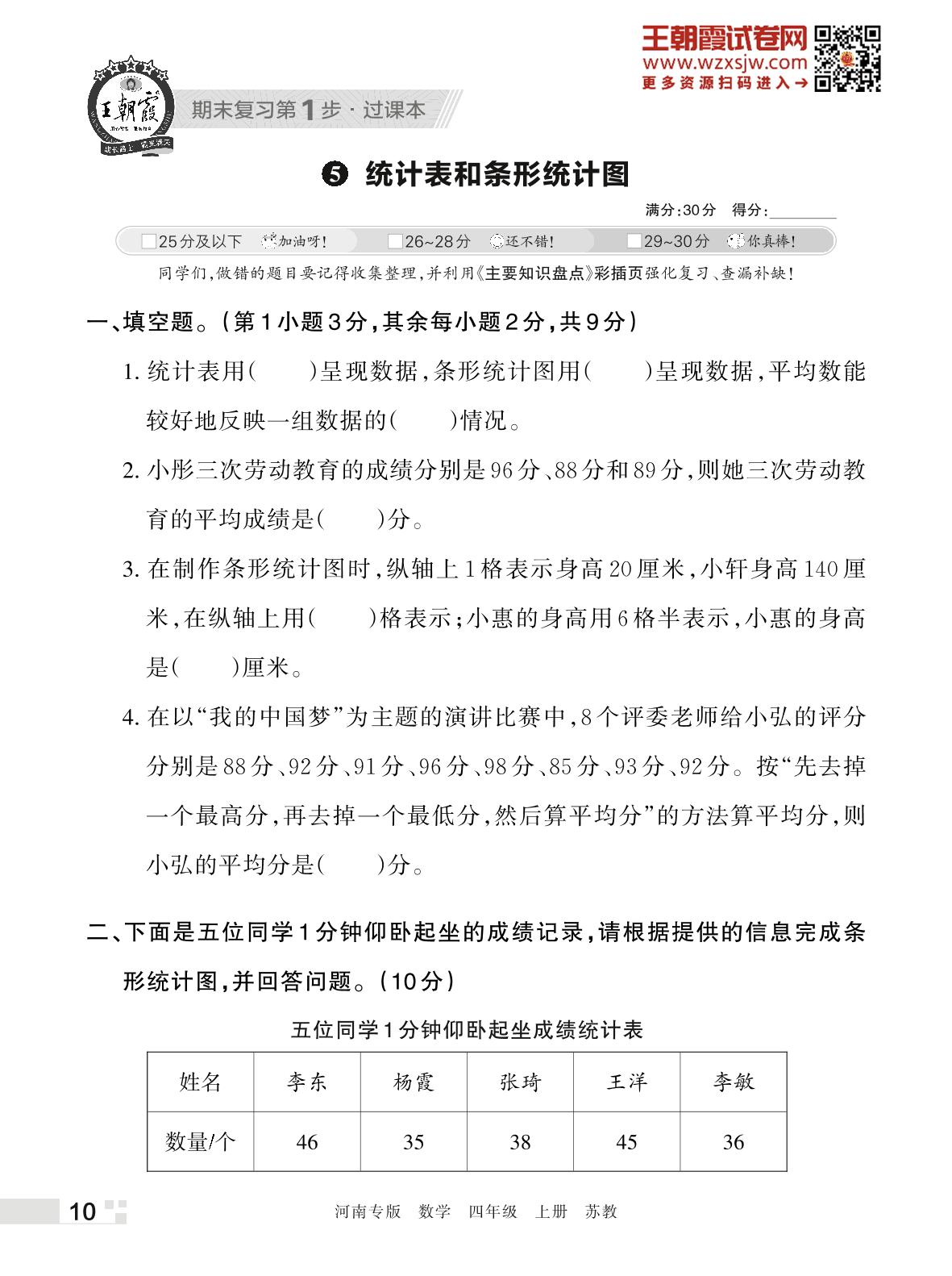 王朝霞期末过课本——5 统计表和条形统计图四年级上册数学(苏教版)_R221111175310802