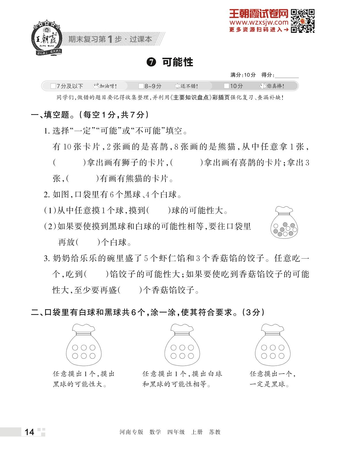 王朝霞期末过课本——7 可能性四年级上册数学(苏教版)_R221111175311964