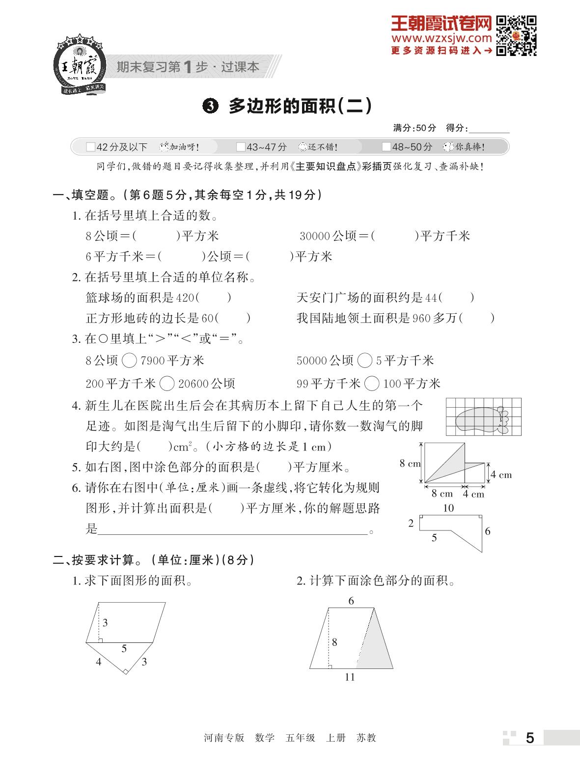 王朝霞期末过课本——3 多边形的面积(二)五年级上册数学(苏教版)_R221111180010359