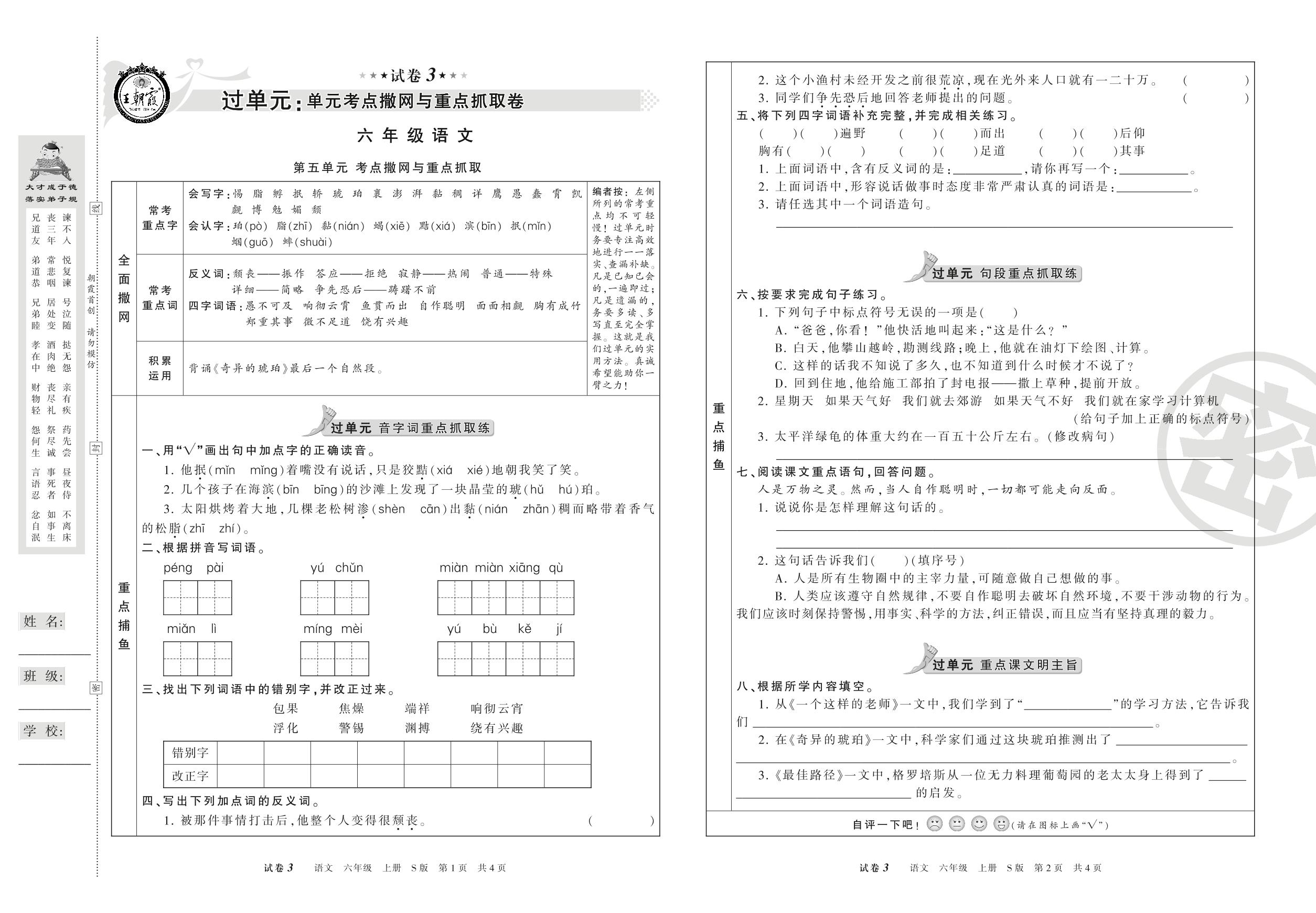 王朝霞期末过单元六年级上册语文(S版)【3】