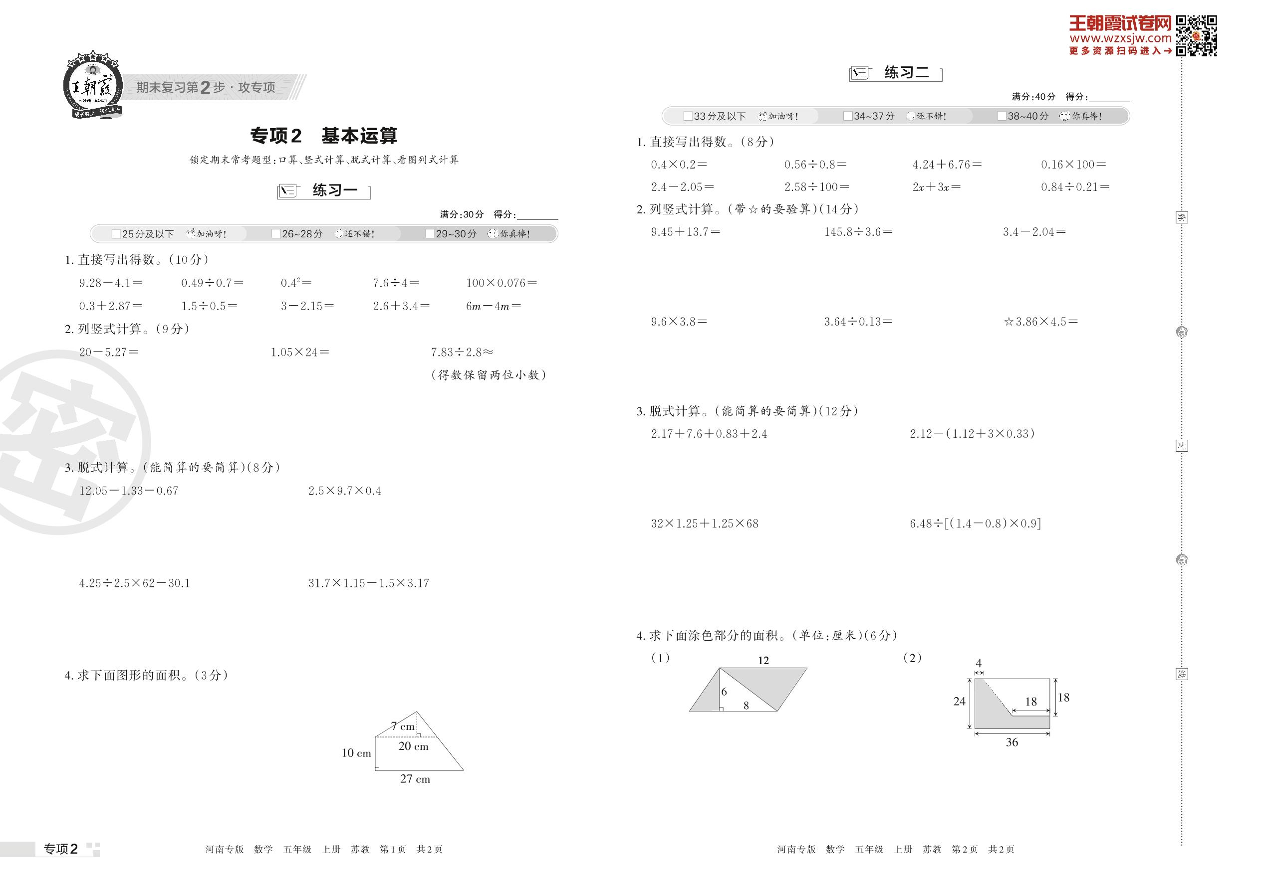 王朝霞期末专项卷——基本运算五年级上册数学(苏教版)_R221111180012326【2】