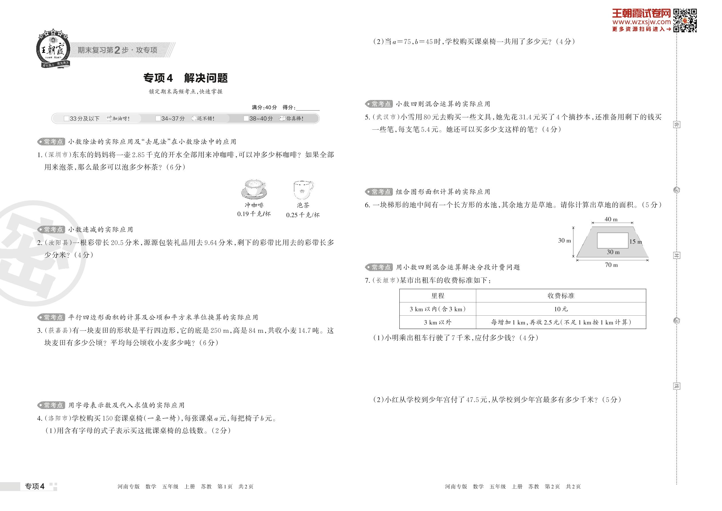 王朝霞期末专项卷——解决问题五年级上册数学(苏教版)_R221111180012709【4】