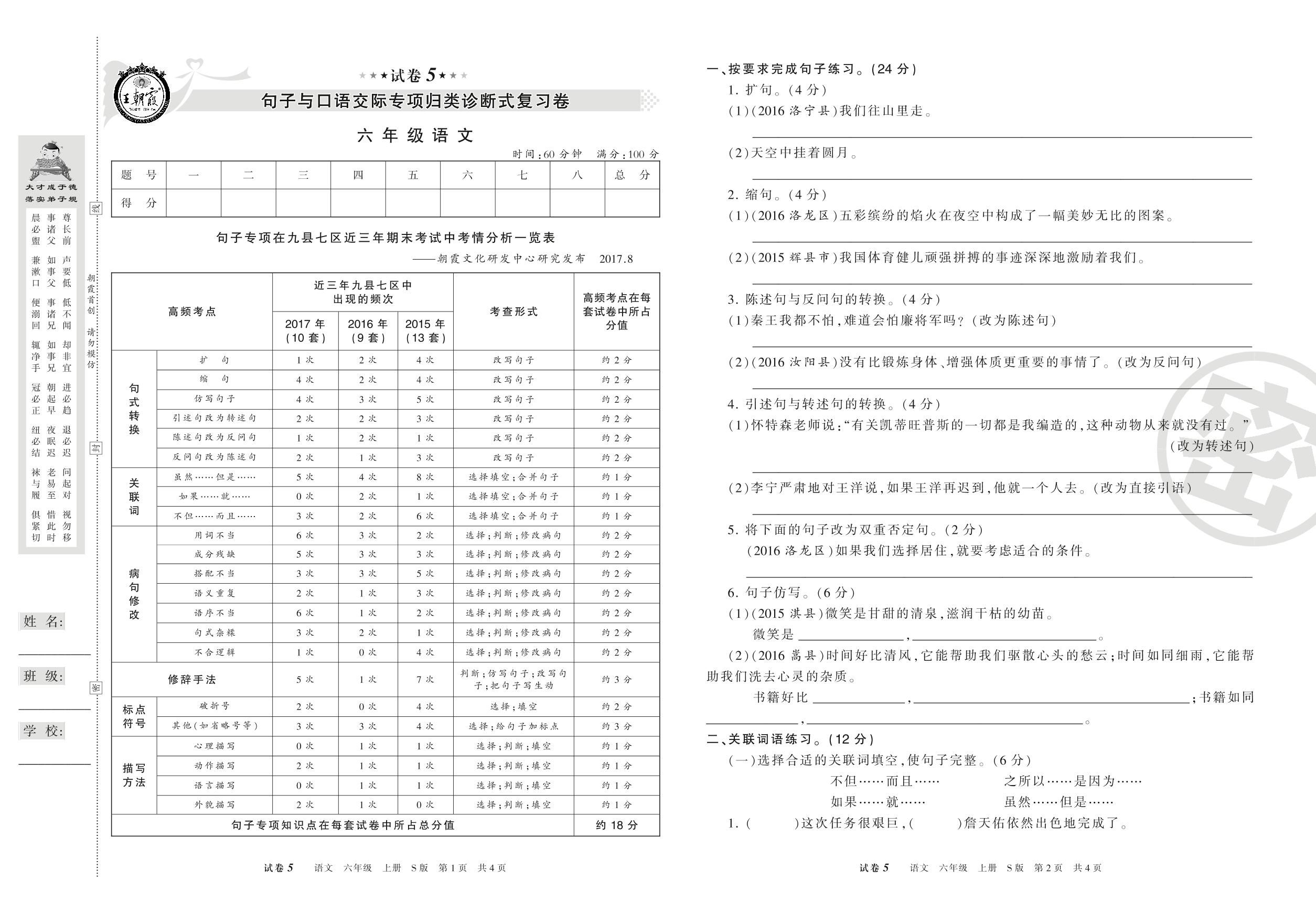 王朝霞期末专项卷六年级上册语文(S版)_R210802110618【5】