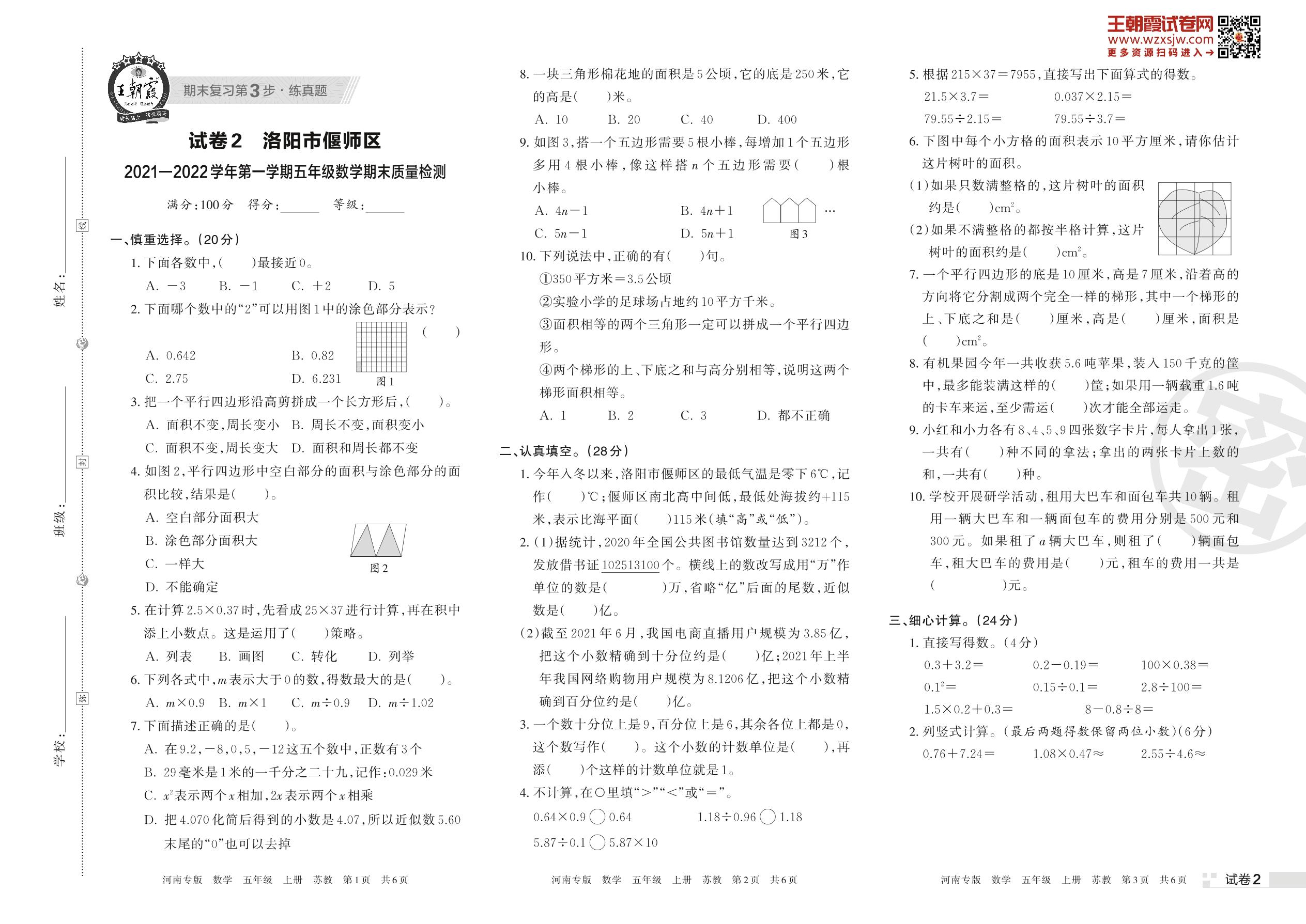 洛阳市偃师区2021—2022学年第一学期五年级数学期末质量检测(苏教版)【2】