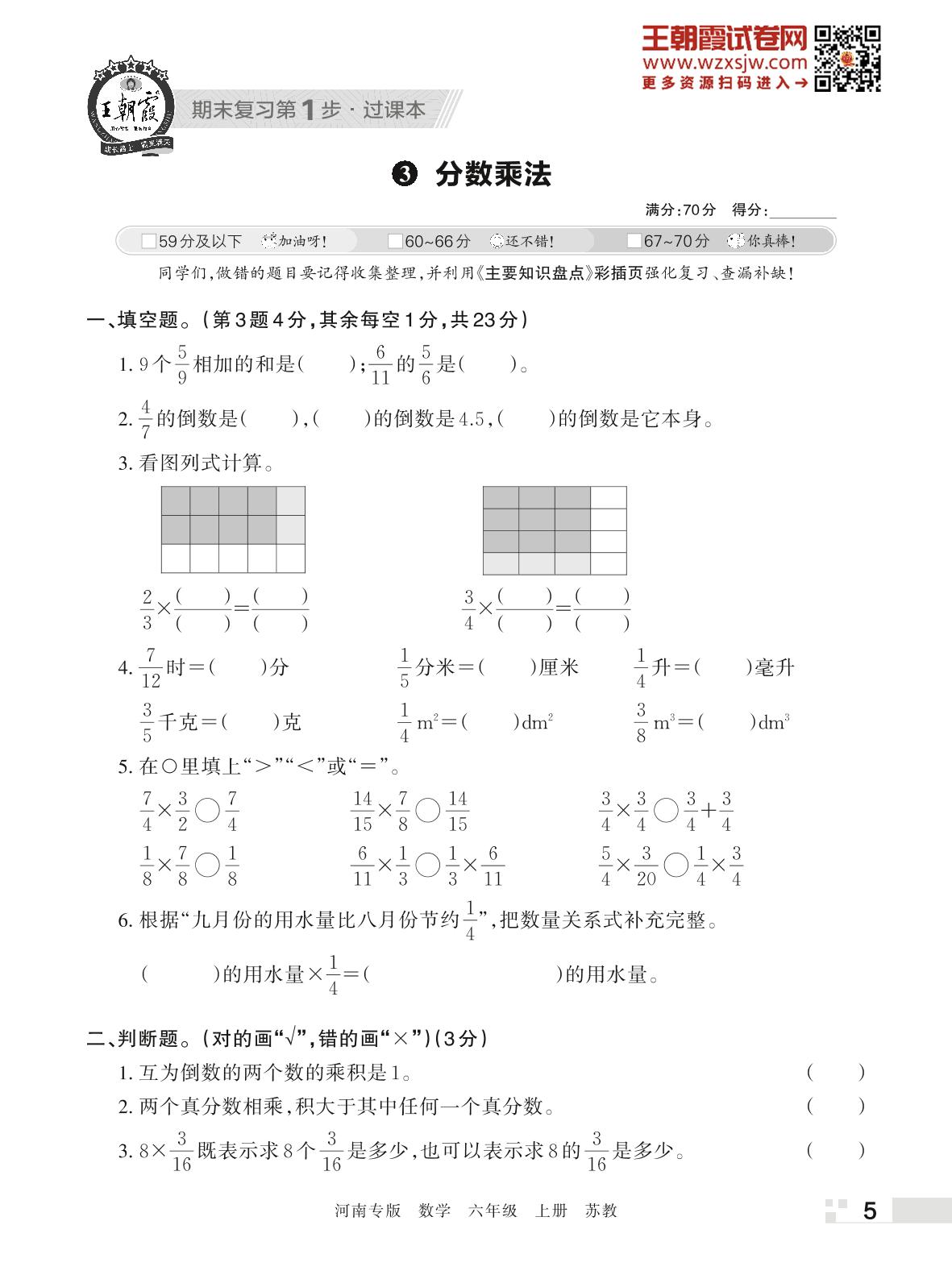 王朝霞期末过课本——3 分数乘法六年级上册数学(苏教版)_R221112084048626