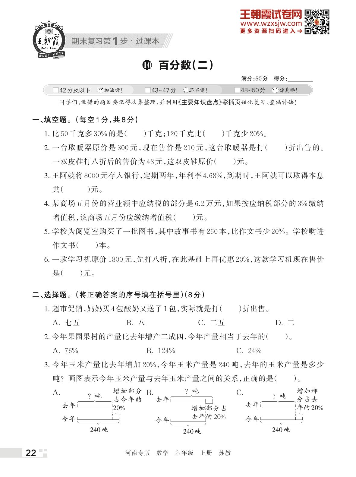 王朝霞期末过课本——10 百分数(二)六年级上册数学(苏教版)_R221112084048986