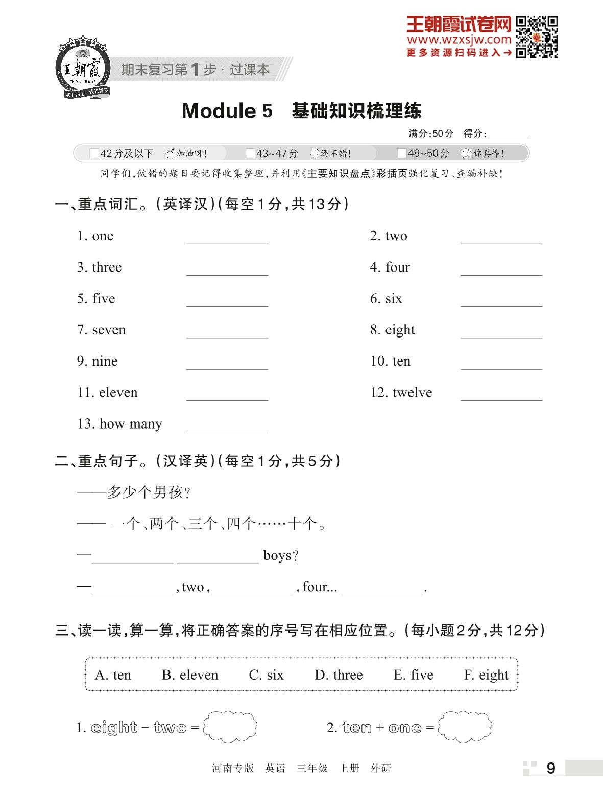 王朝霞期末过课本——Module 5 基础知识梳理练三年级上册英语(外研版)_R221112101328127