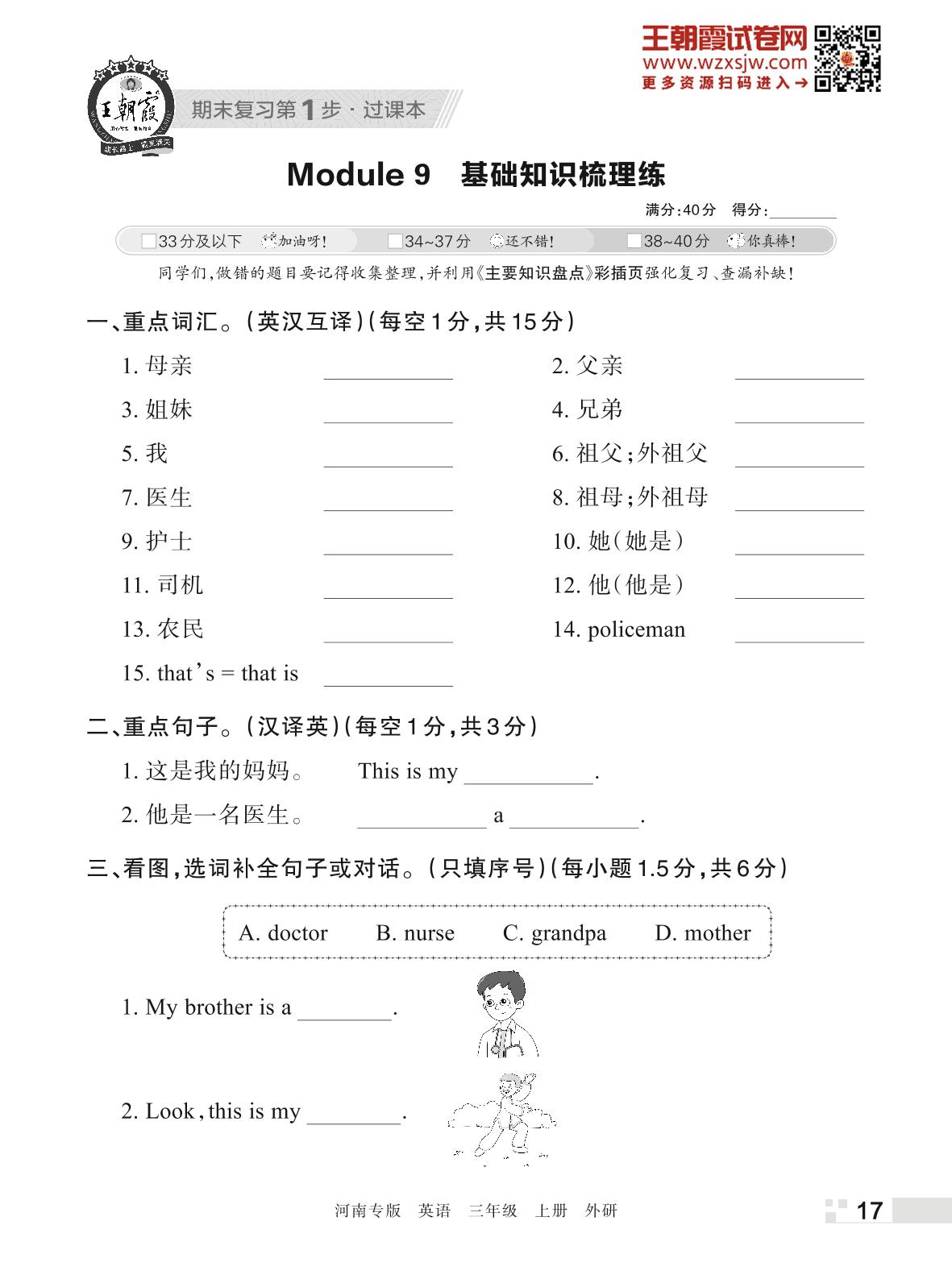 王朝霞期末过课本——Module 9 基础知识梳理练三年级上册英语(外研版)_R221112101328300