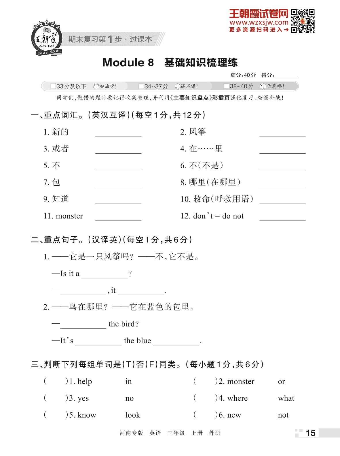 王朝霞期末过课本——Module 8 基础知识梳理练三年级上册英语(外研版)_R221112101328256