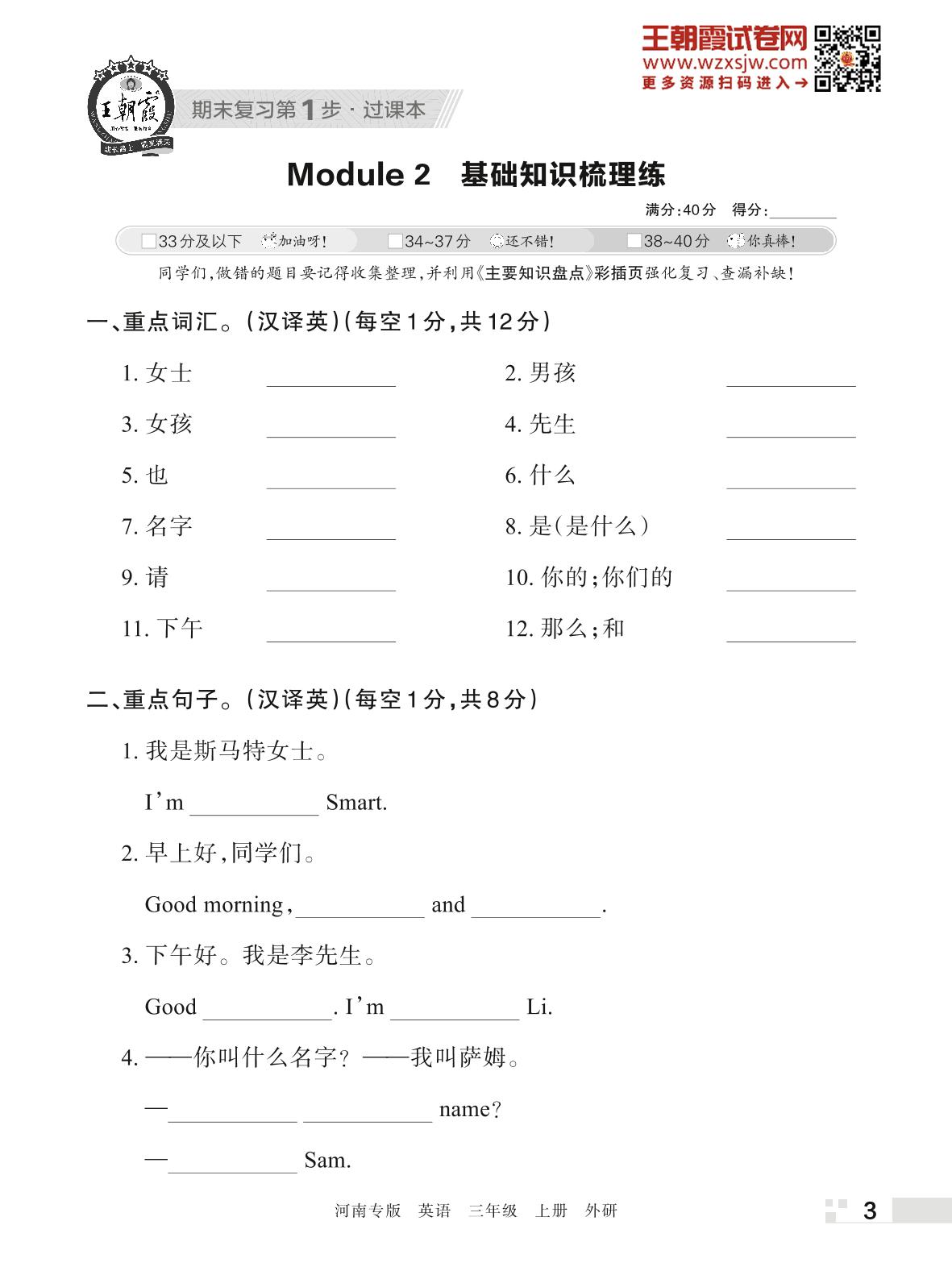 王朝霞期末过课本——Module 2 基础知识梳理练三年级上册英语(外研版)_R221112101328131