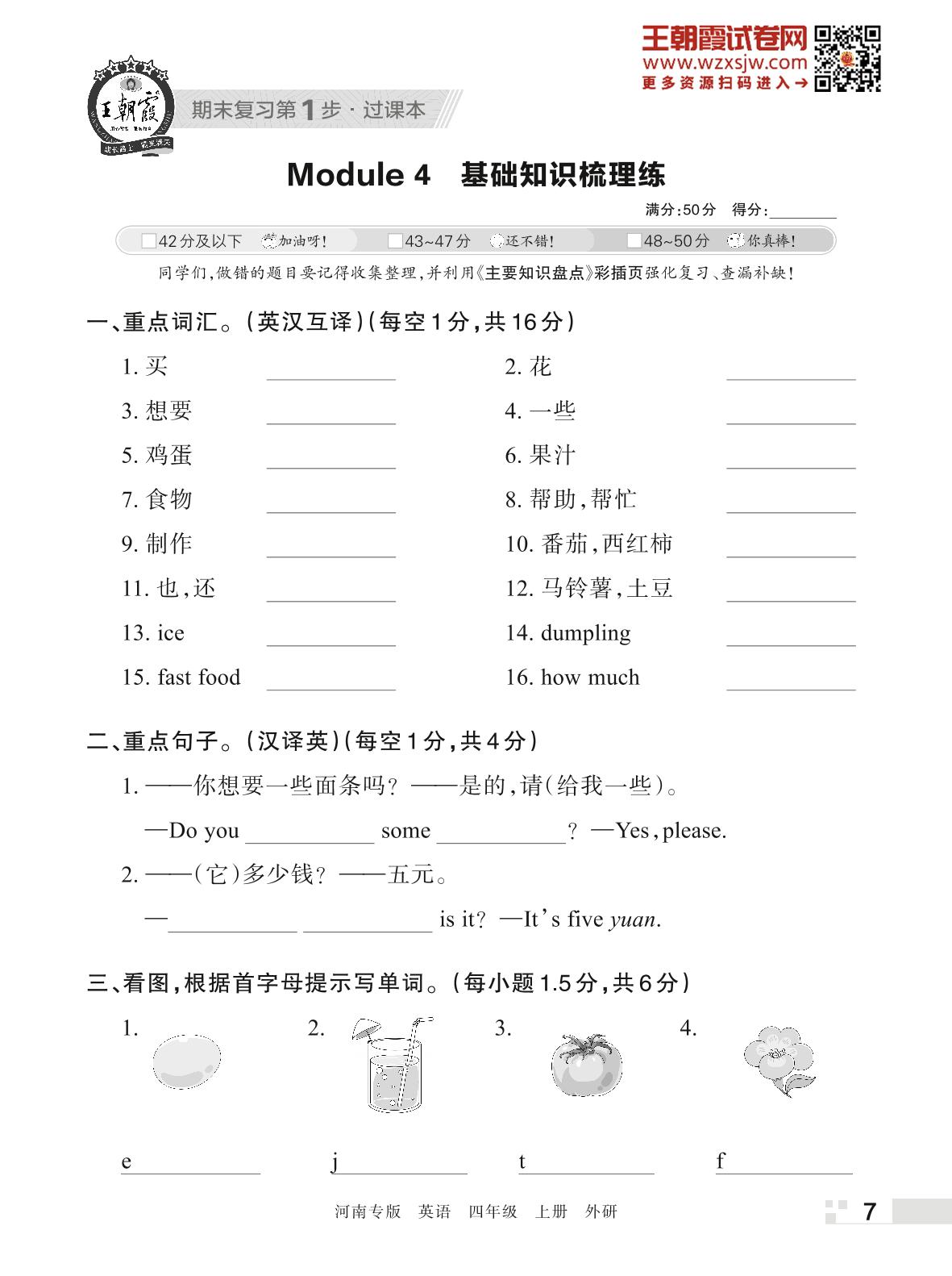 王朝霞期末过课本——Module 4 基础知识梳理练四年级上册英语(外研版)_R221112102309121