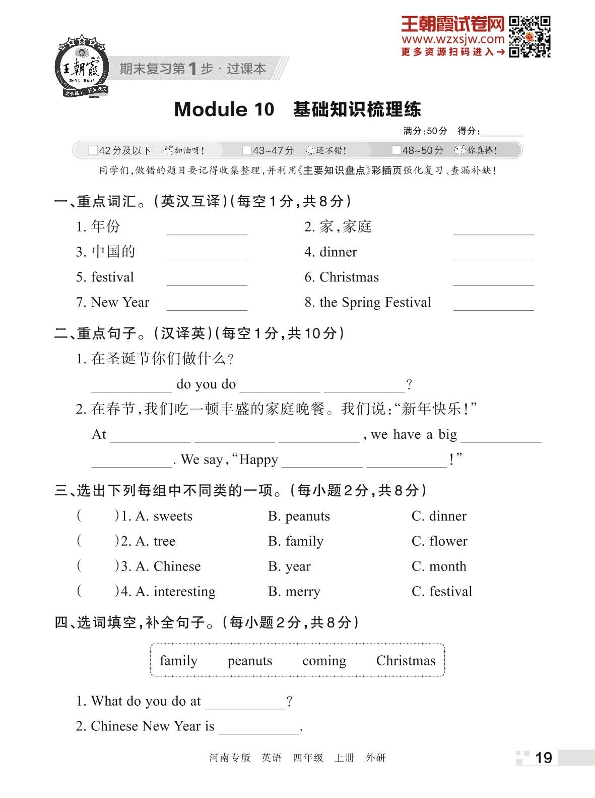 王朝霞期末过课本——Module 10 基础知识梳理练四年级上册英语(外研版)_R221112102309490