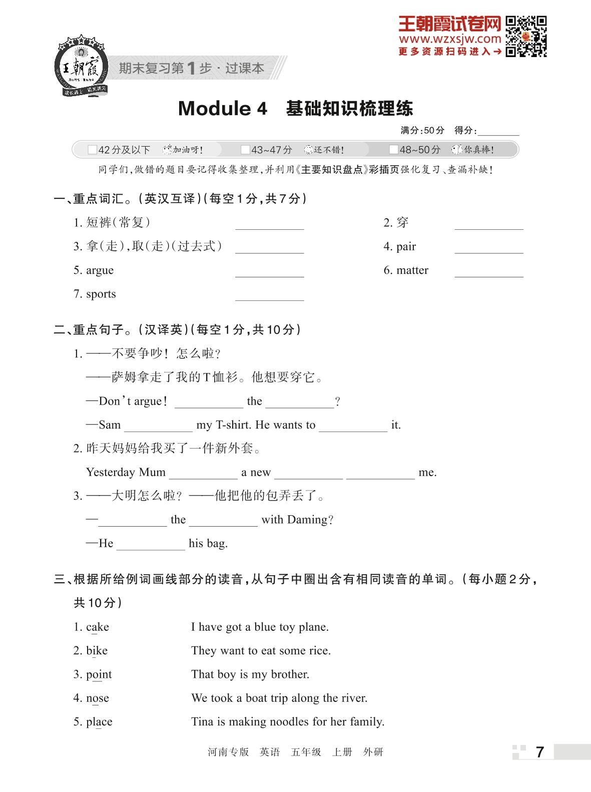 王朝霞期末过课本——Module 4 基础知识梳理练五年级上册英语(外研版)_R221112103157591