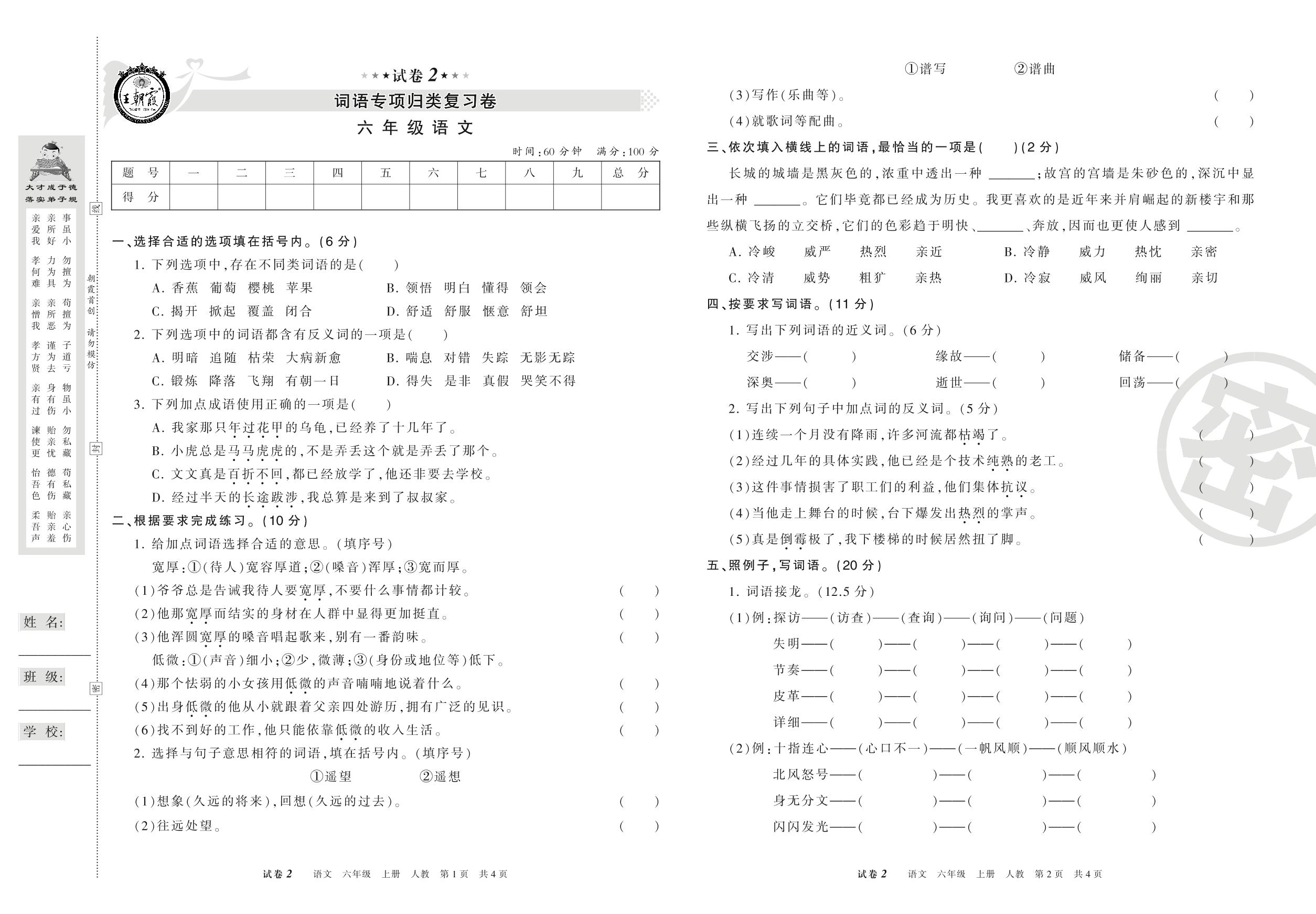 王朝霞期末专项卷六年级上册语文(人教版)_R210802111135【2】