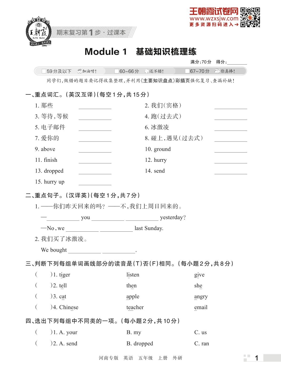 王朝霞期末过课本——Module 1 基础知识梳理练五年级上册英语(外研版)_R221112103158210