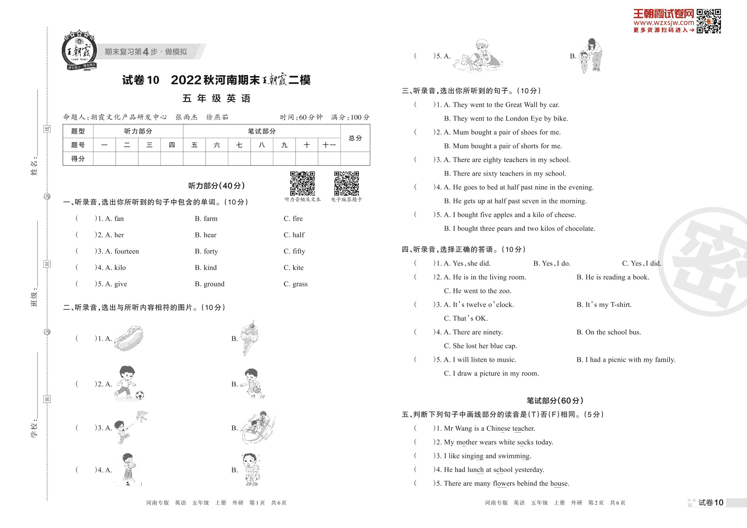王朝霞期末模拟卷五年级上册英语(外研版)_R221112103201460【10】