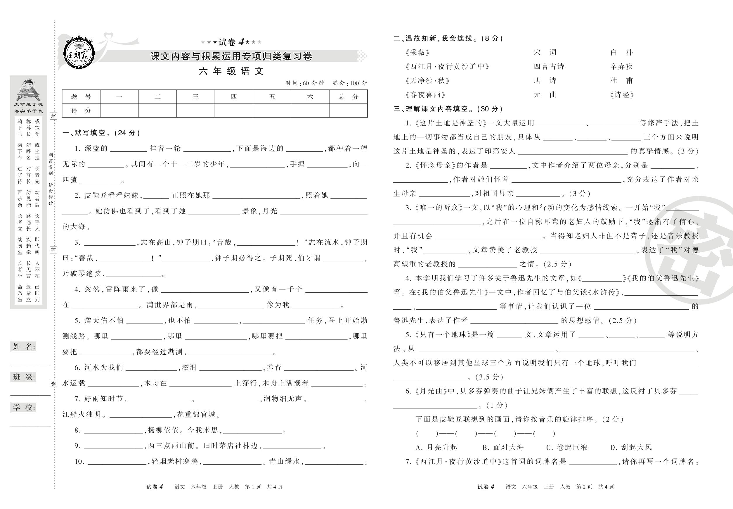 王朝霞期末专项卷六年级上册语文(人教版)_R210802111146【4】