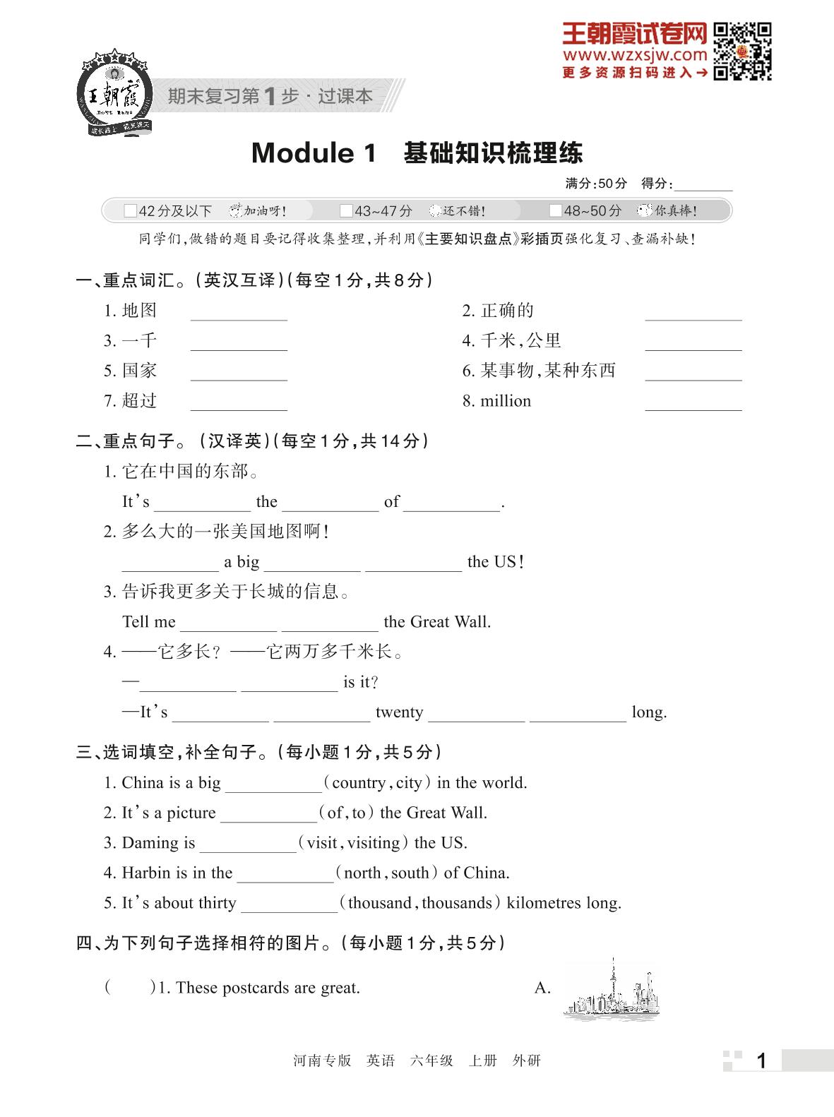 王朝霞期末过课本——Module 1 基础知识梳理练六年级上册英语(外研版)_R221112104108316