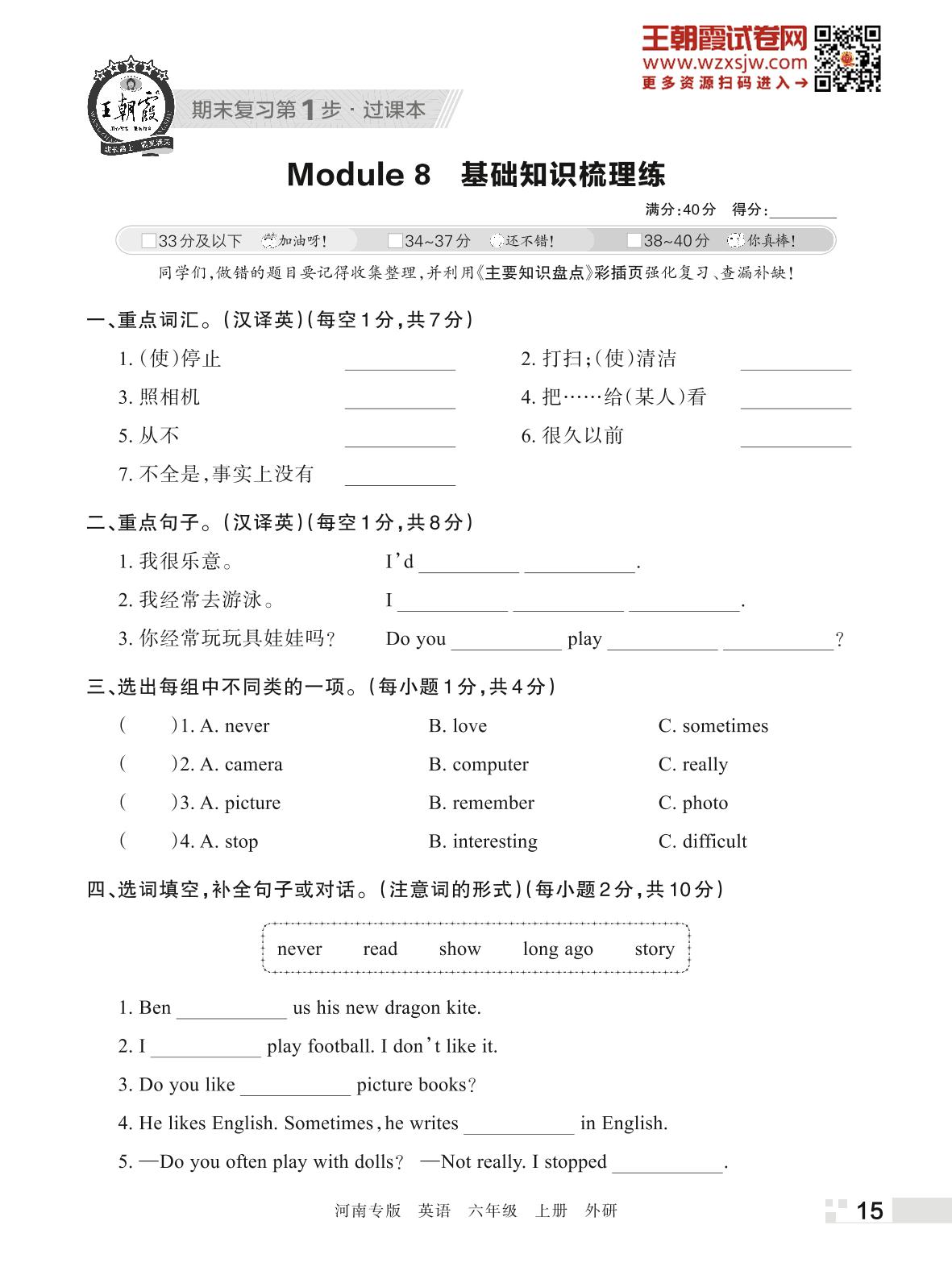 王朝霞期末过课本——Module 8 基础知识梳理练六年级上册英语(外研版)_R221112104109123