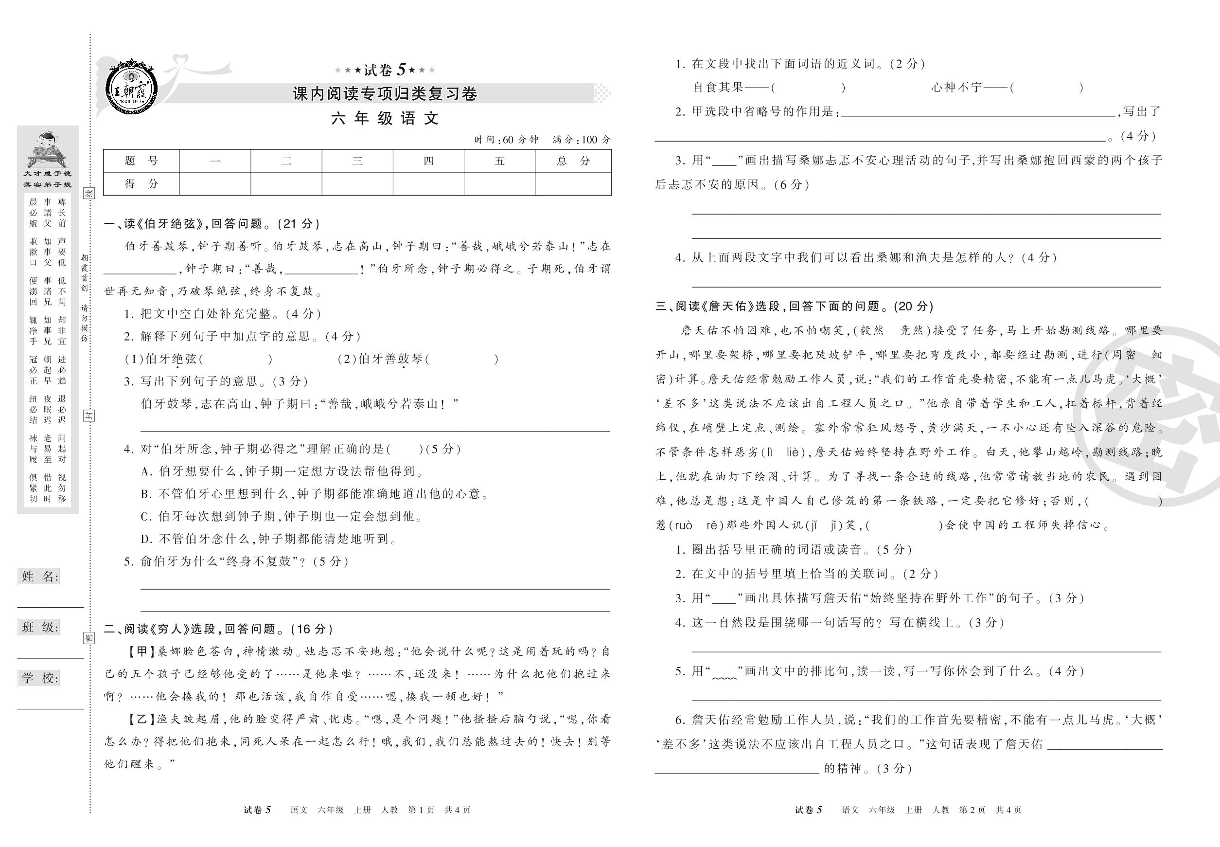 王朝霞期末专项卷六年级上册语文(人教版)_R210802111152【5】