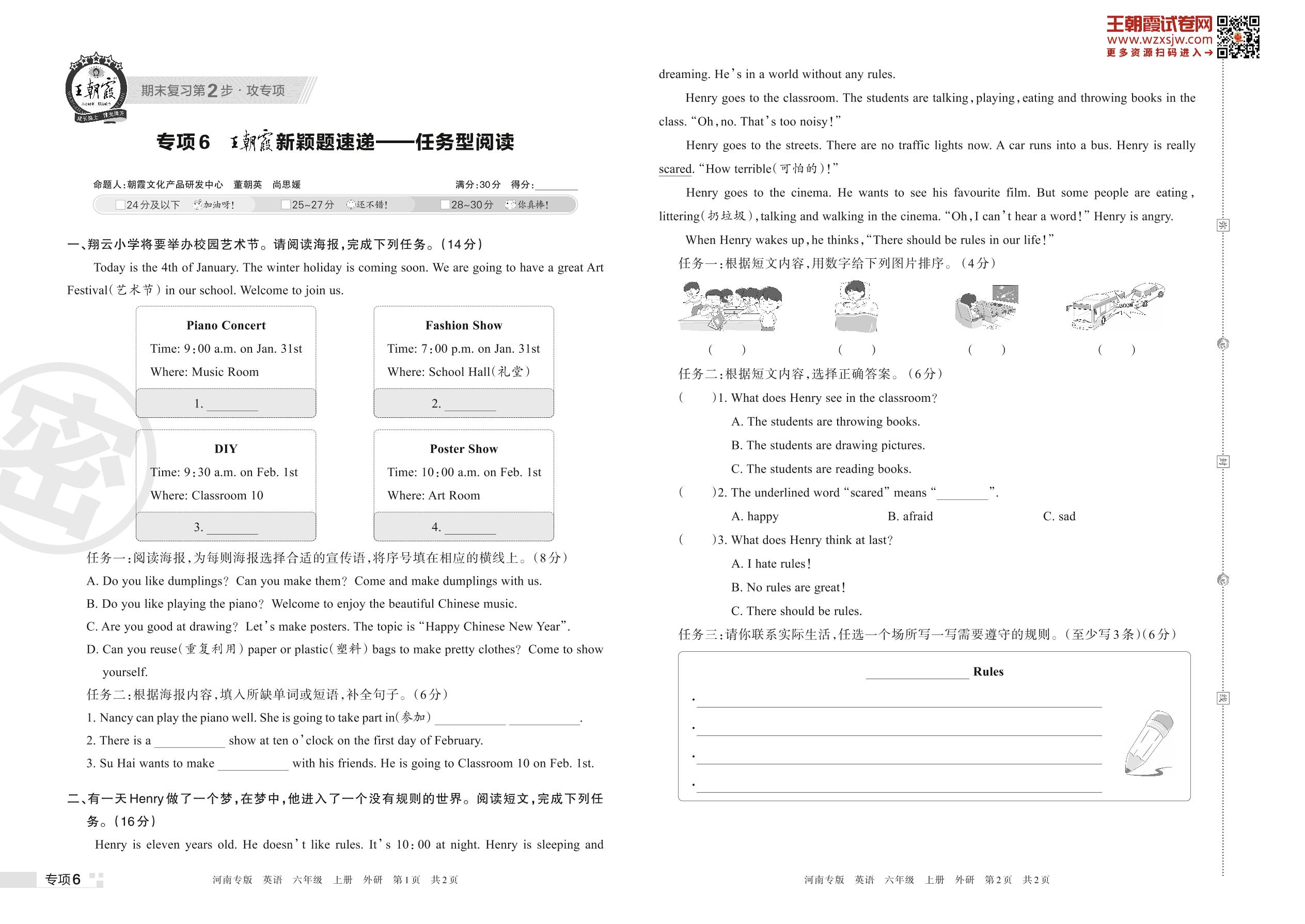 王朝霞期末专项卷——王朝霞新颖题速递:任务型阅读六年级上册英语(外研版)_R221112104110614【6】