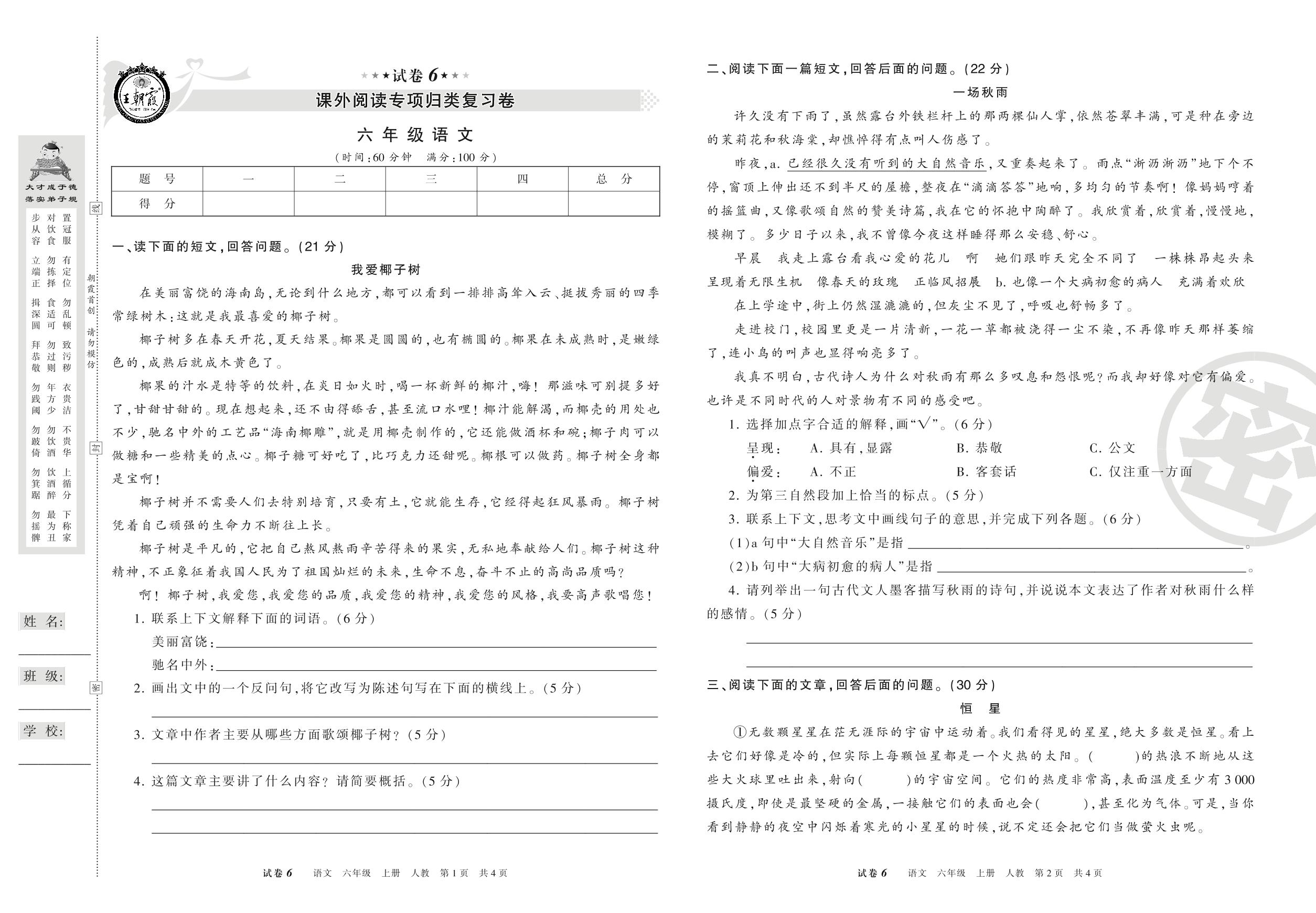 王朝霞期末专项卷六年级上册语文(人教版)_R210802111159【6】