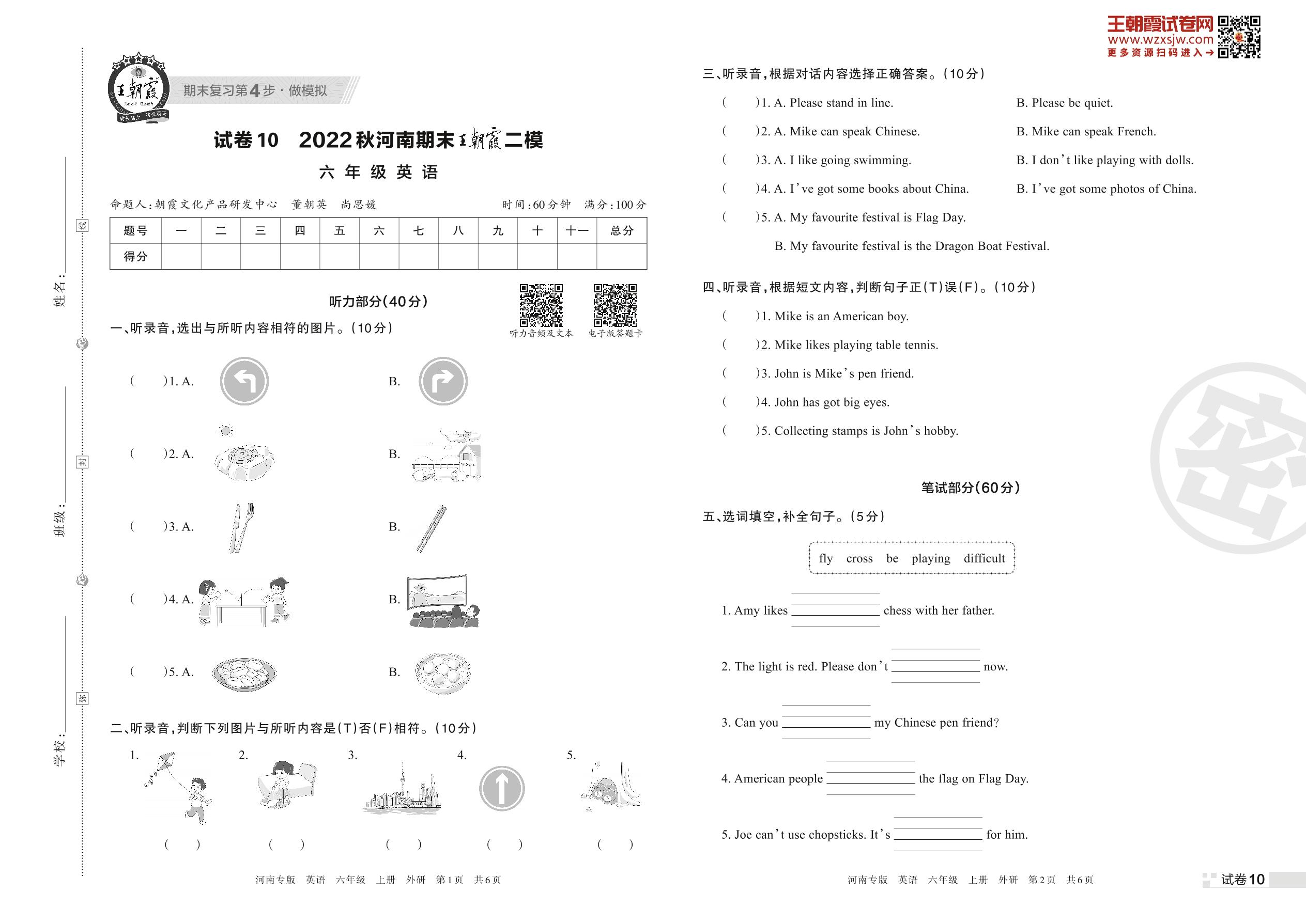 王朝霞期末模拟卷六年级上册英语(外研版)_R221112104111579【10】