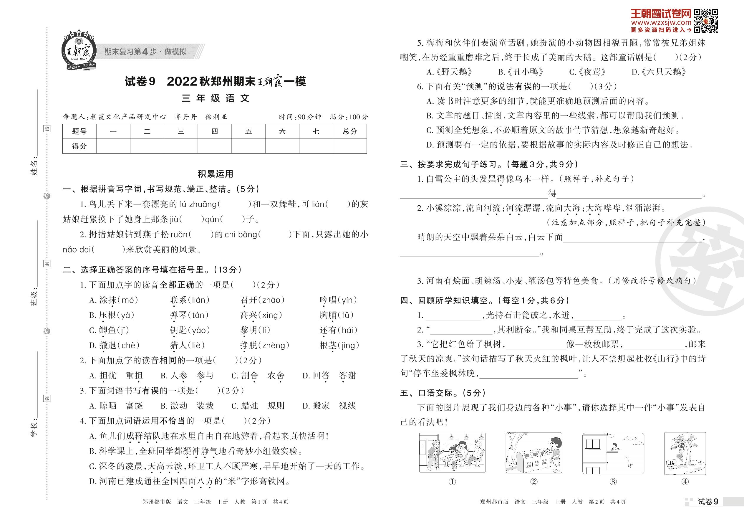 王朝霞期末模拟卷三年级上册语文(人教版)_R221112134253011【9】