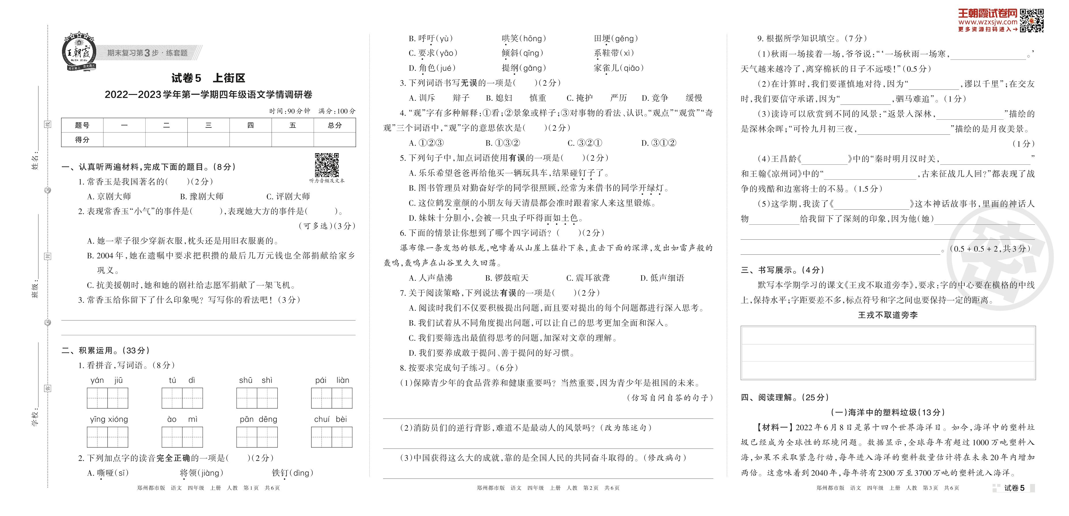上街区2022—2023学年第一学期四年级语文学情调研卷(人教版)【5】