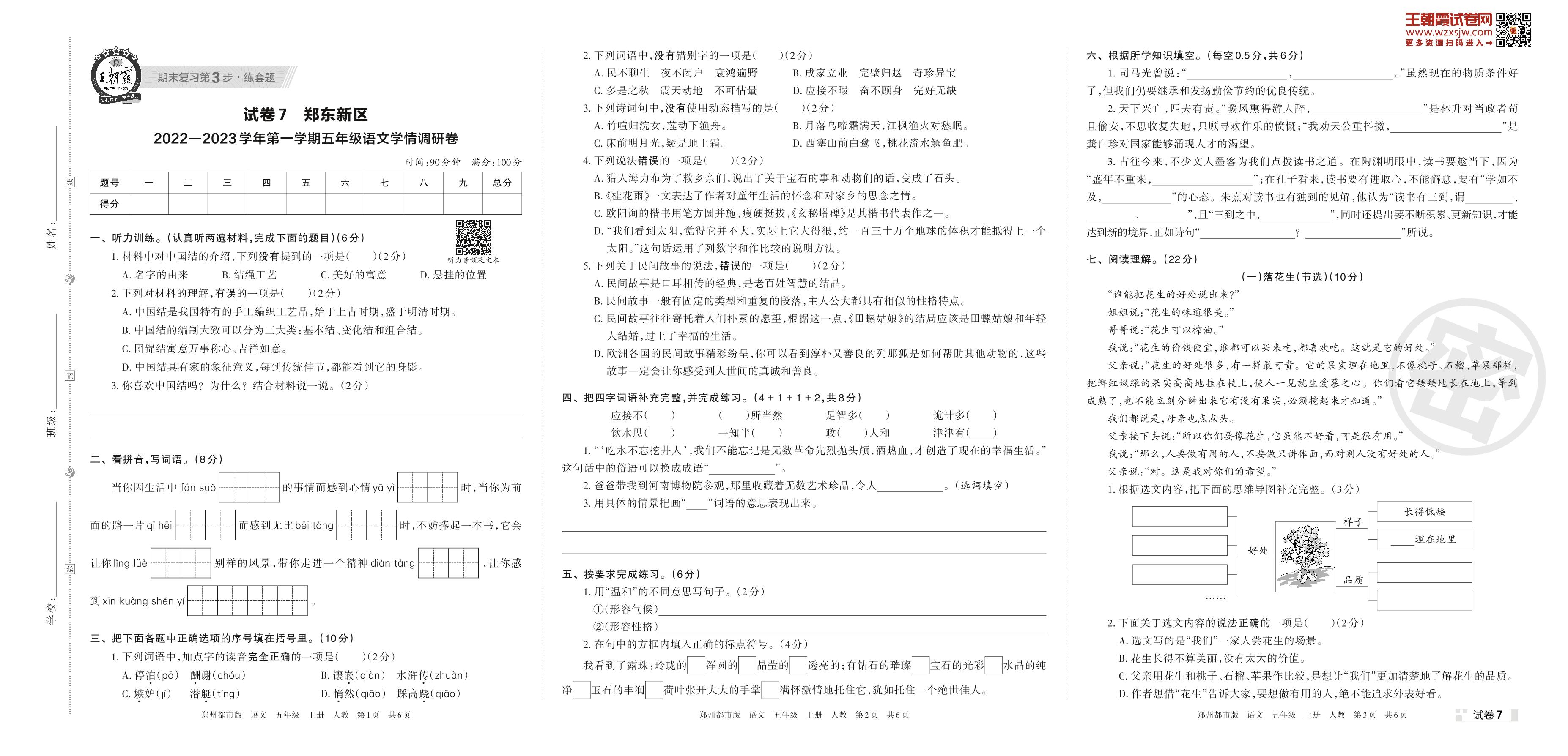 郑东新区2022—2023学年第一学期五年级语文学情调研卷(人教版)【7】