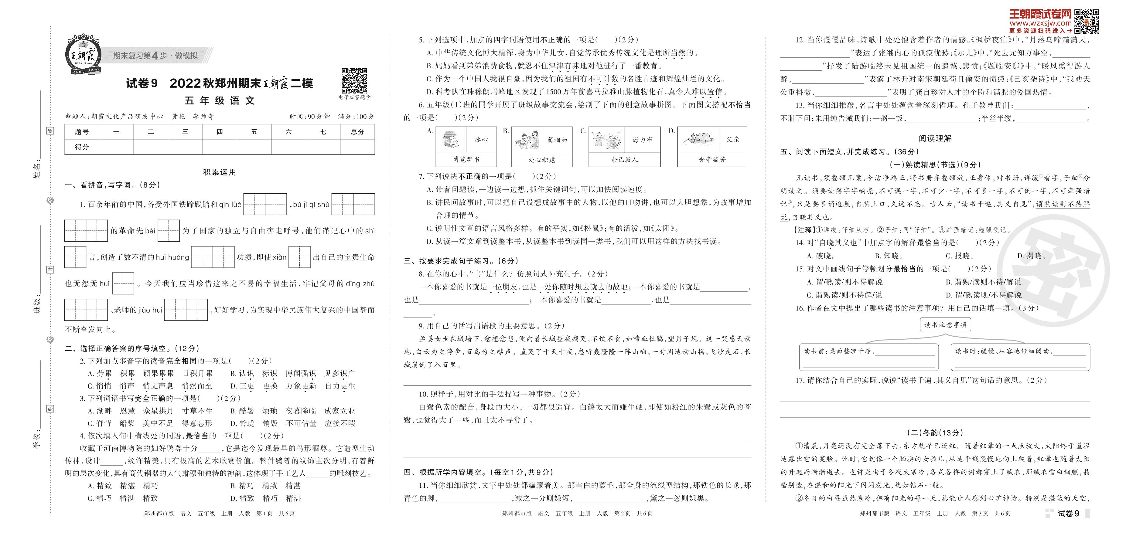王朝霞期末模拟卷五年级上册语文(人教版)_R221112135651084【9】