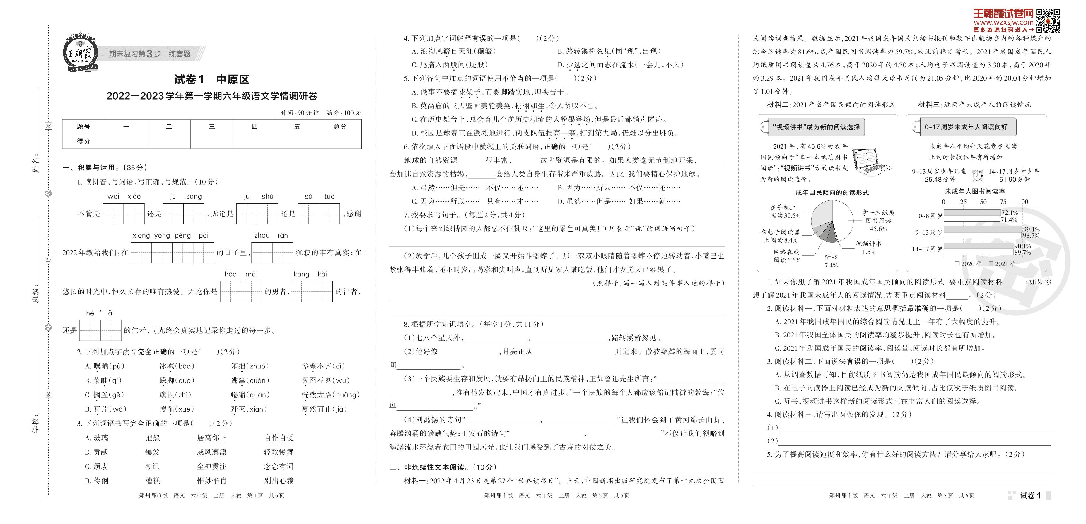 中原区2022—2023学年第一学期六年级语文学情调研卷(人教版)【1】