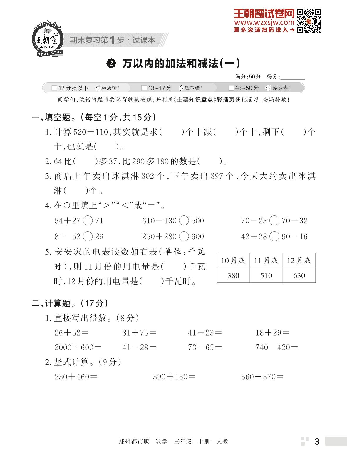 王朝霞期末过课本——2 万以内的加法和减法(一)三年级上册数学(人教版)_R221112141019204