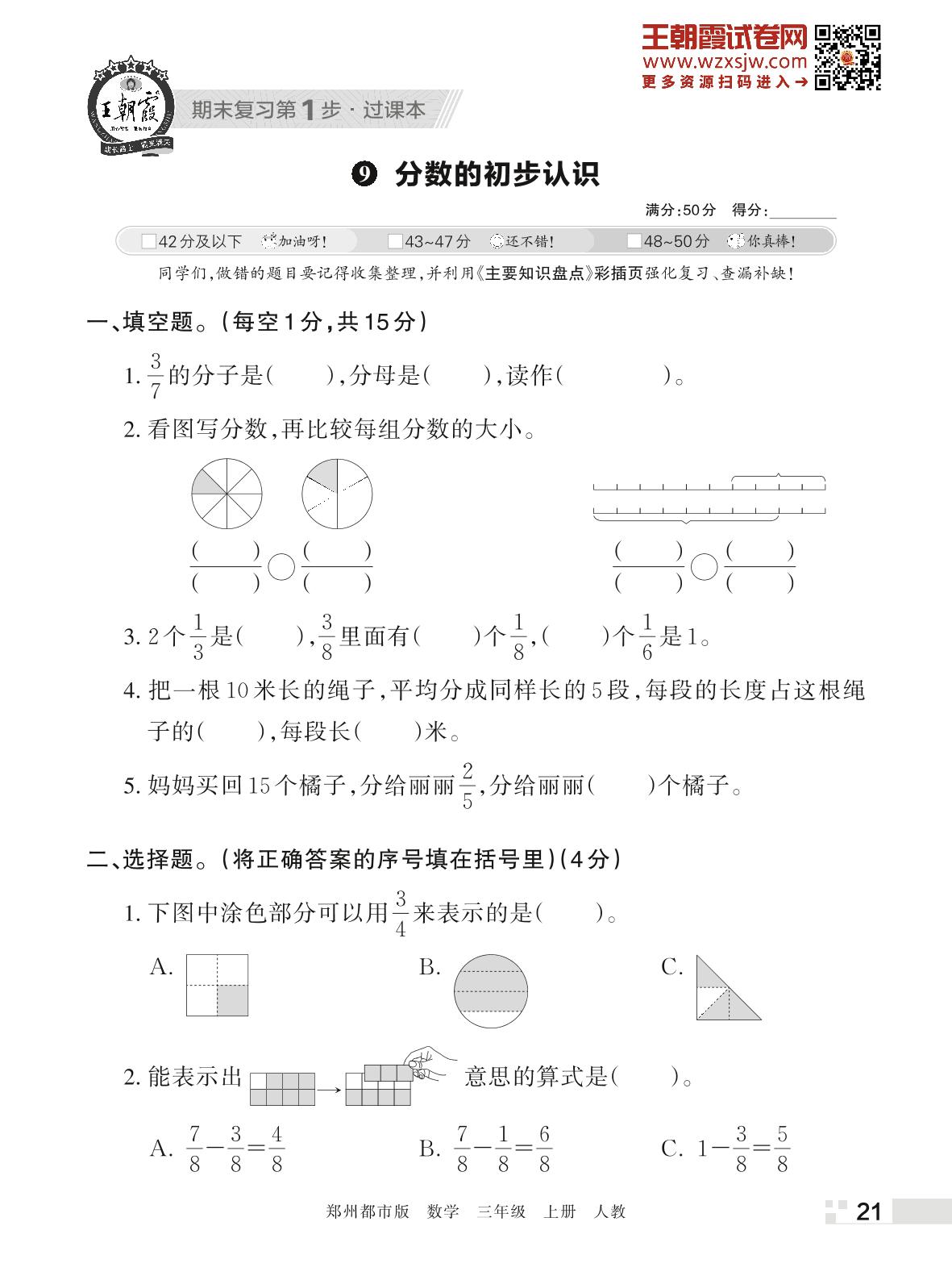 王朝霞期末过课本——9 分数的初步认识三年级上册数学(人教版)_R221112141020203
