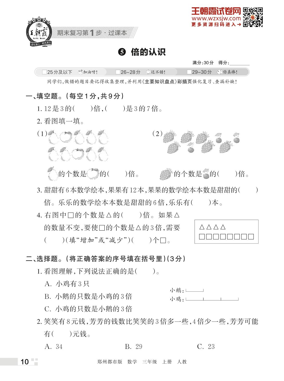 王朝霞期末过课本——5 倍的认识三年级上册数学(人教版)_R221112141020402