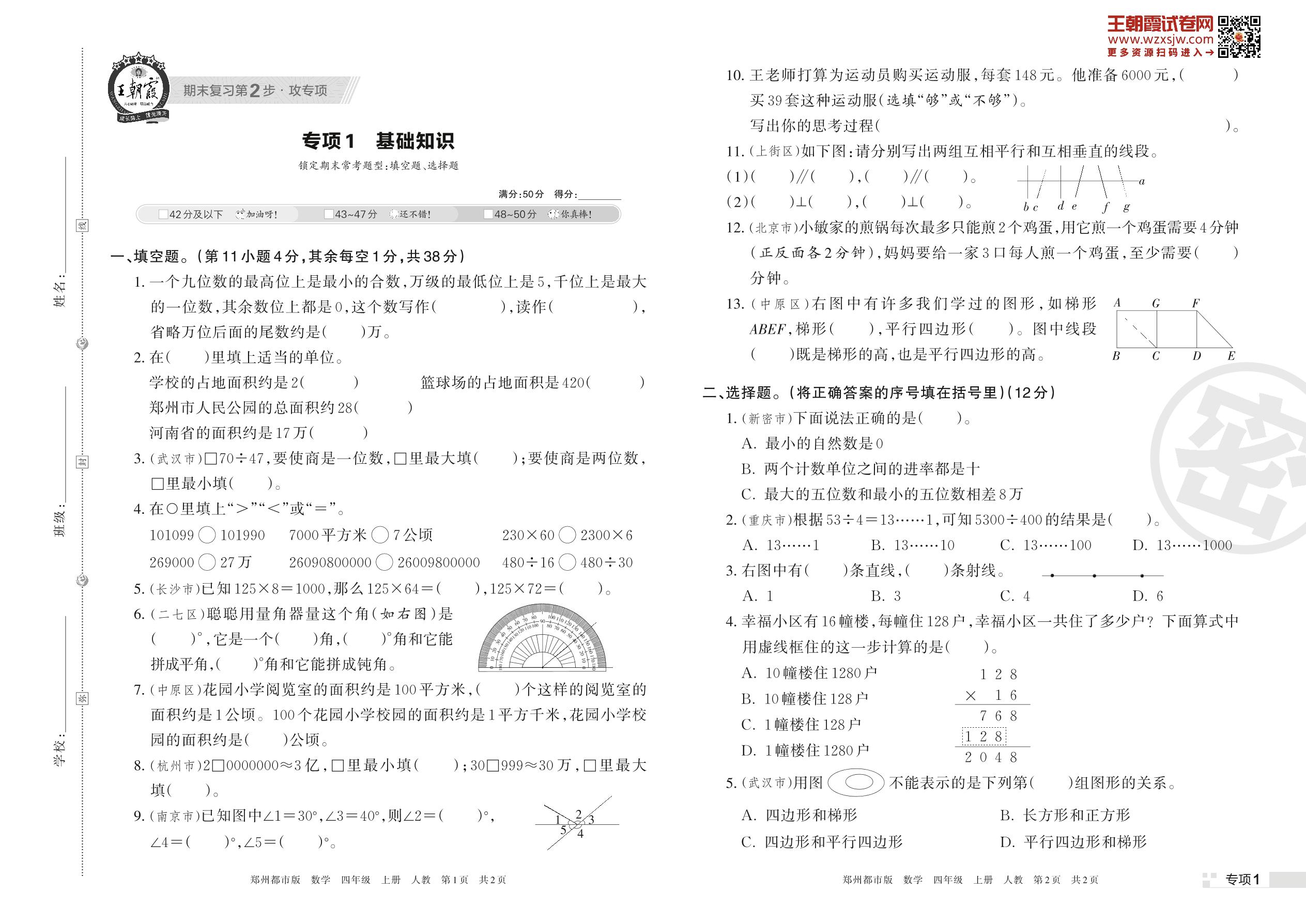 王朝霞期末专项卷——基础知识四年级上册数学(人教版)_R221112141647922【1】