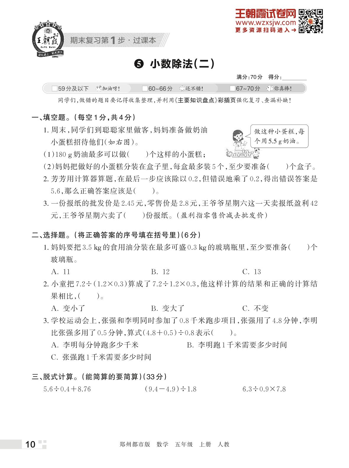 王朝霞期末过课本——5 小数除法(二)五年级上册数学(人教版)_R221112142330517