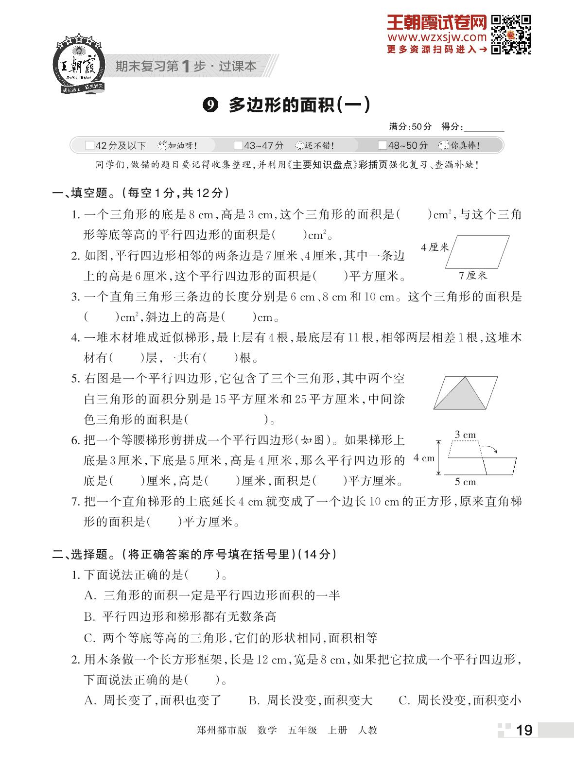 王朝霞期末过课本——9 多边形的面积(一)五年级上册数学(人教版)_R221112142331415